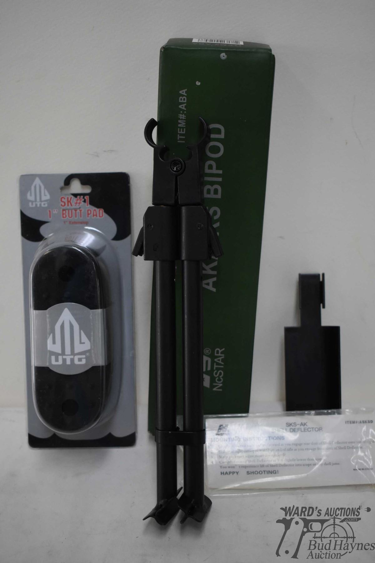 NcStar - AK/SKS bipod new in original box, new in package 1" butt pad for sks buttstock and new in package sks shell deflector
