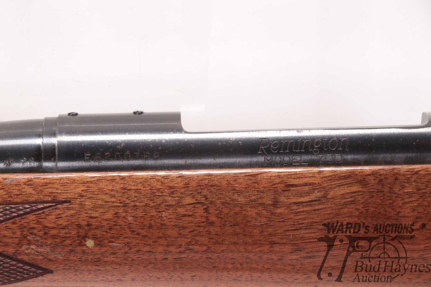 Non-Restricted rifle Remington model 700, .375 H&H Mag bolt action, w/ bbl length 24 1/2" [Blued barrel and receiver. Fixed front and adjustable rear sights. Internal box magazine. Includes black sling. Checkered hardwood stock with branded recoil pad. Mechanically appears near excellent. Likely had little use, some finish worn on mag base and other areas but mostly minor use, handling and storage marks.] serial # E6200769, PAL required