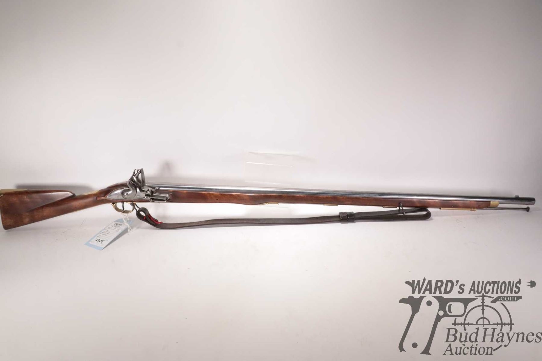 Non-Restricted rifle Tower model Brown Bess, .75 cal Percussion Single shot muzzle loading, w/ bbl length 41" [Reproduction muzzle loader with stainless steel barrel, fixed front sights and full length wooden stock. Accented with period style markings. Includes ramrod and leather sling. Mechanically appears to function reasonably well with minor use, handling and storage marks.] serial # NONE SEEN, PAL required