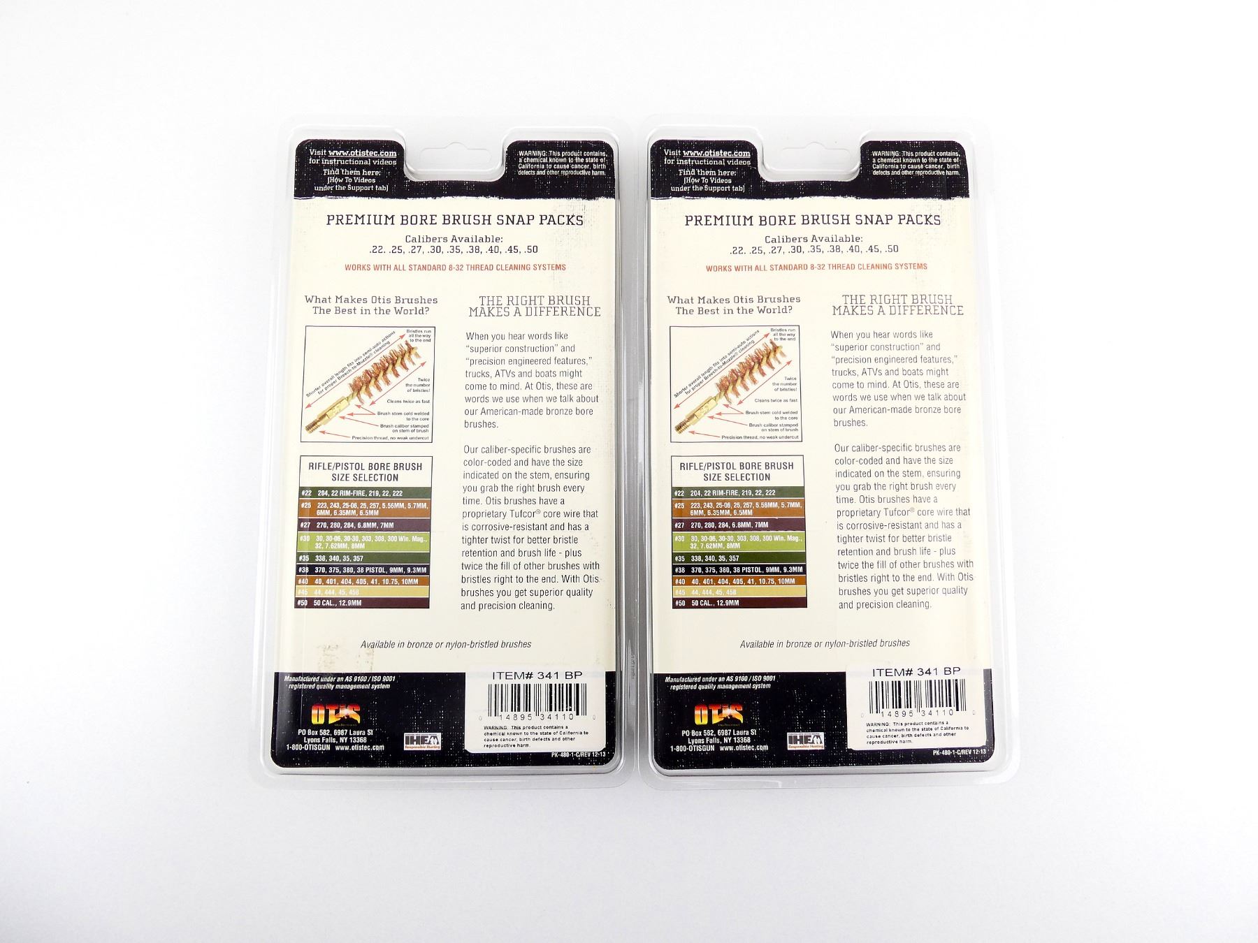 LOT INCLUDES; (2) PACKAGES OF .40 CAL. CLEANING BRUSHES, BRASS, STANDARD 8-32 THREAD, PART #: 341 BP, NOS IN ORIGINAL PACKAGING. SEE PHOTOS.