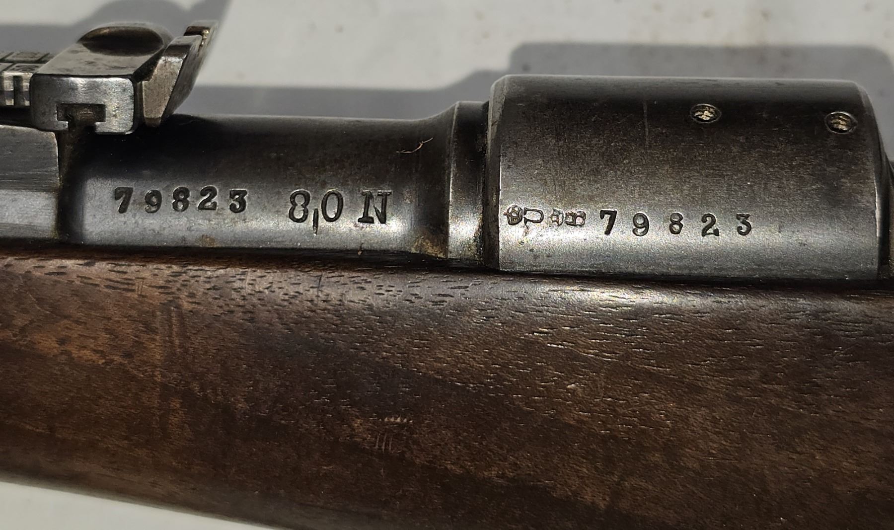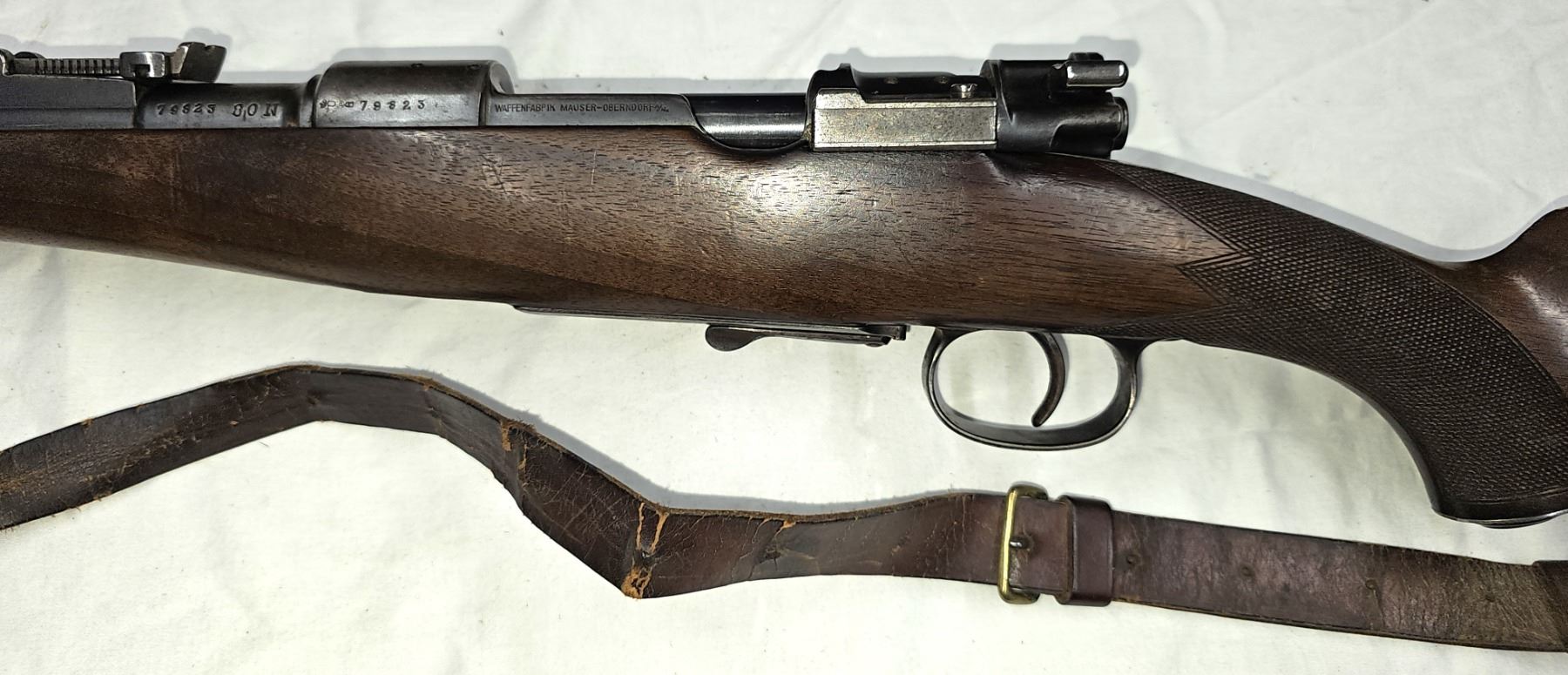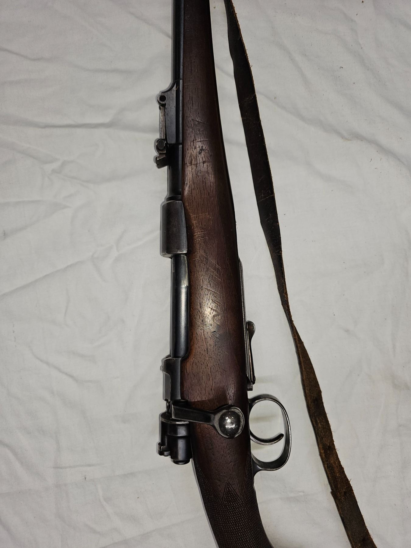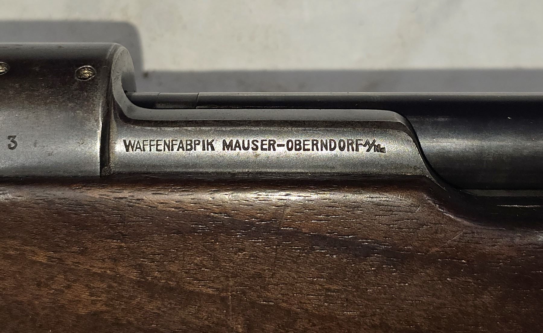 This rifle has matching Mauser numbered parts on receiver, barrel, bolt sleeve, bolt