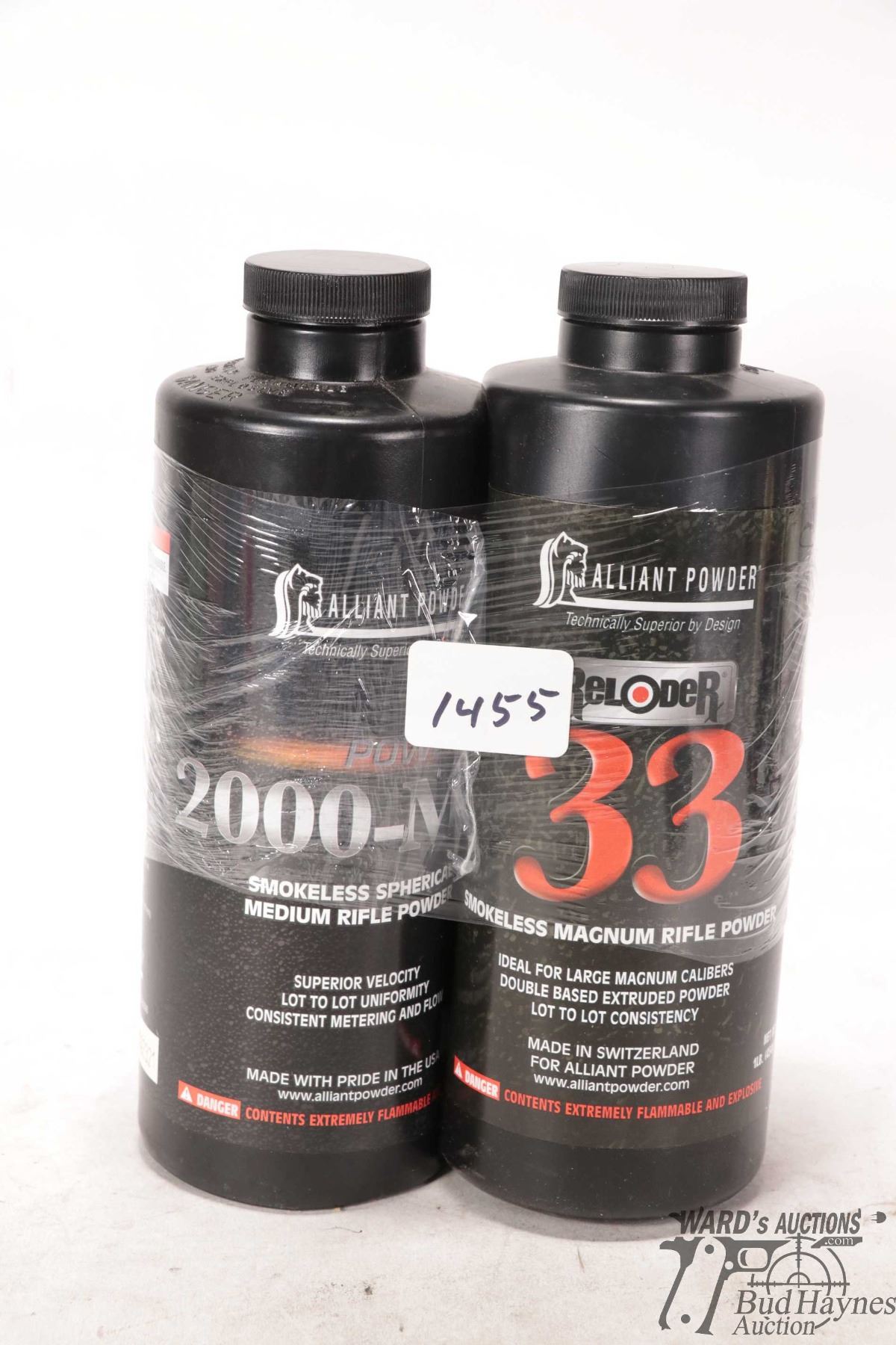 One full 1lb container of Alliant 2000-M rifle One full 1lb container of Alliant 2000-M rifle powder and a mostly full container of Alliant 33 magnum rifle powder