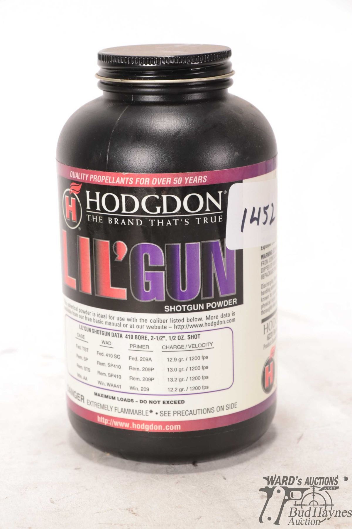 One full 1lb container of Hodgdon Lil 'Gun shot One full 1lb container of Hodgdon Lil 'Gun shot gun powder