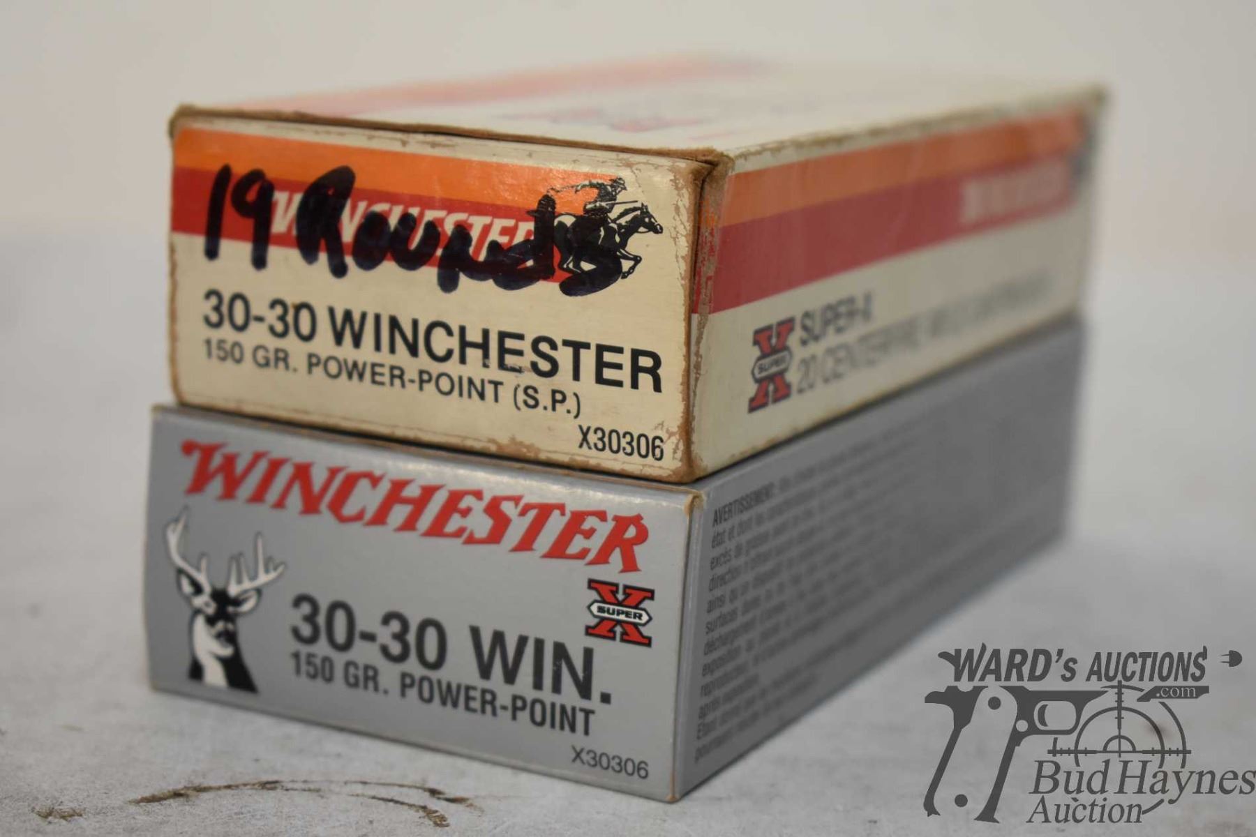 One full 20 count box Winchester Super X .30-30 win 150 gr power point and a partial 19 count box w/ 5 original Winchester .30-30 win 150 gr power point and 14 rounds may or may not be reloads