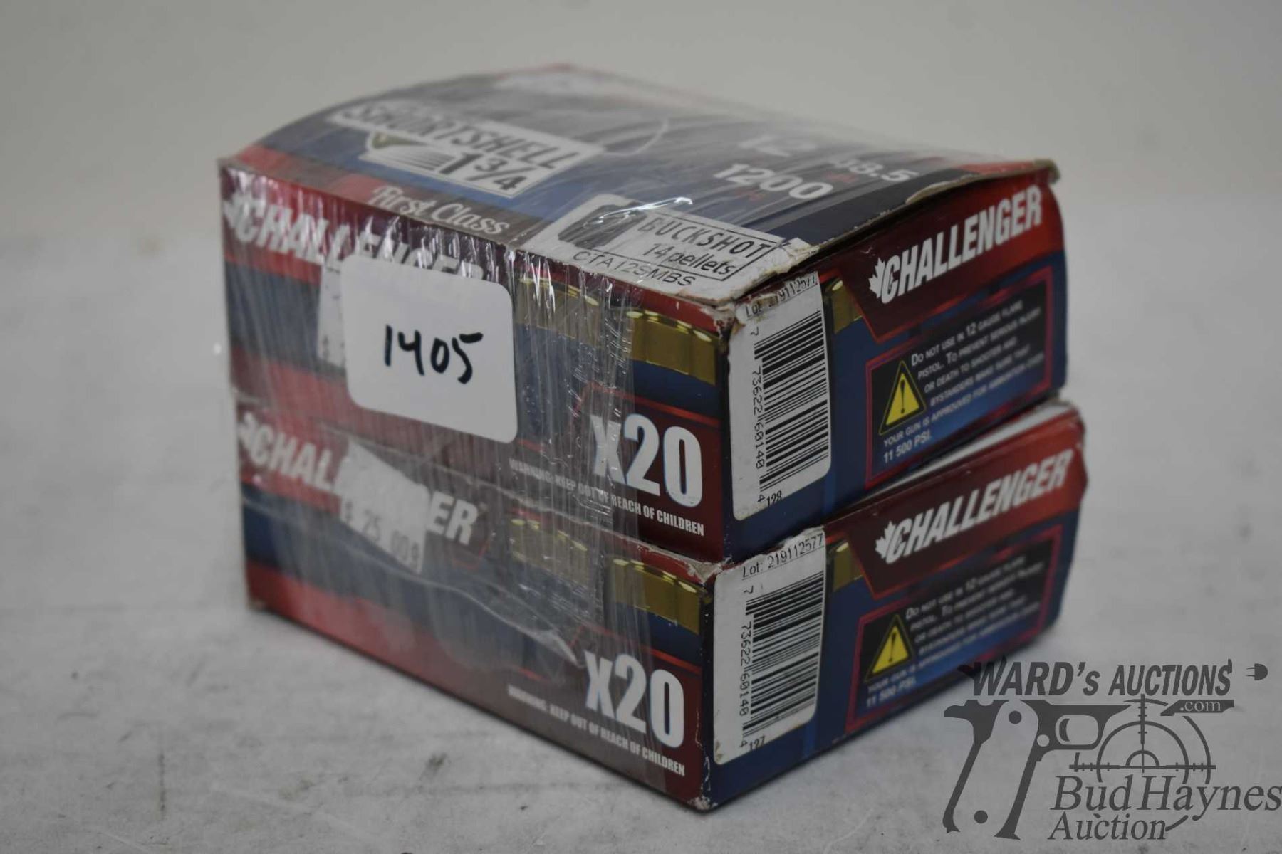 One full 20 count box and one partial 13 count box Challenger 12 GA 48.5mm 14 pellet buck shot