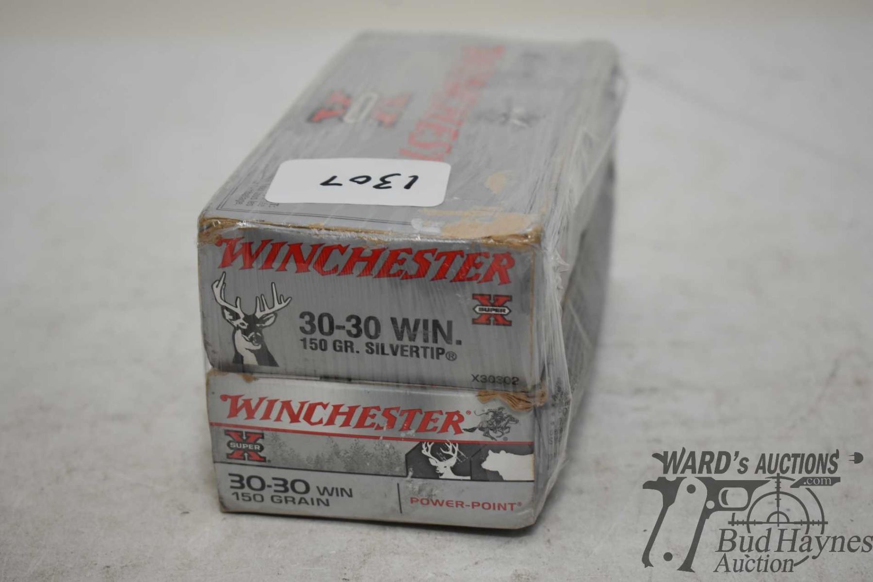 One full 20 count box and one partial 14 count box of Winchester .30-30 150 gr, 20 w/ power point and 14 w/ silver tip