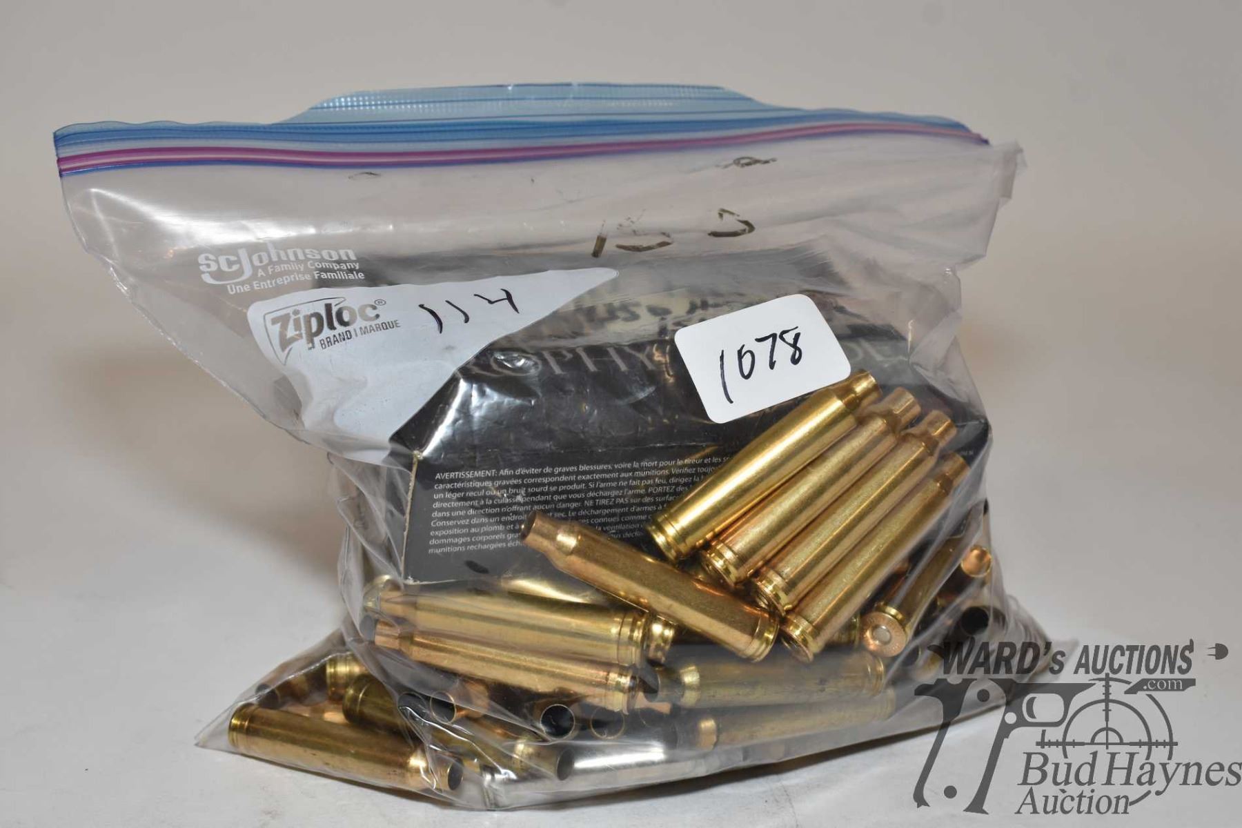 One full 20 count box of .300 win mag reloads and 114 primed brass