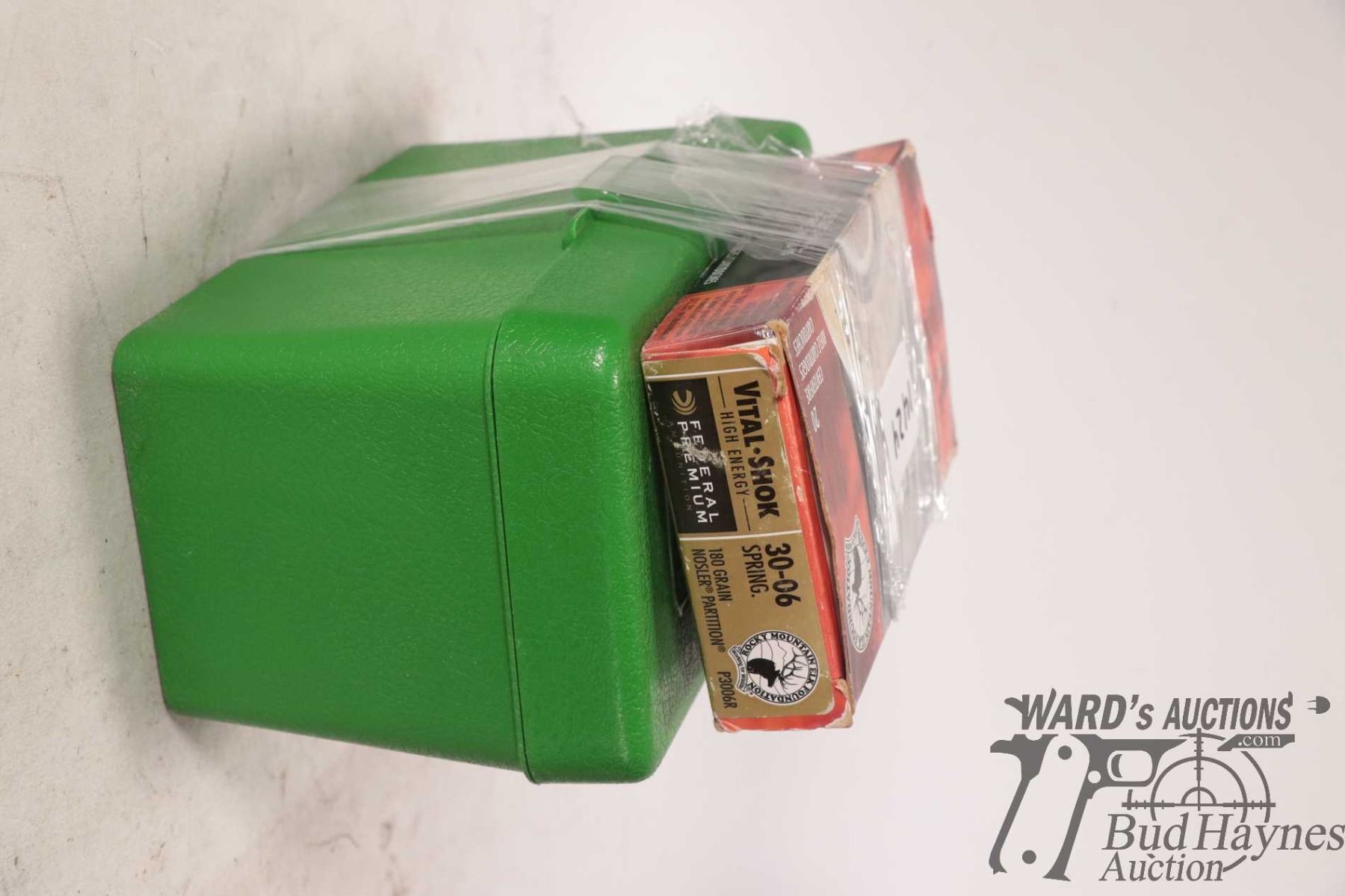 One full 20 count box w/ 14 factory Federal .30/06 One full 20 count box w/ 14 factory Federal .30/06 180 gr Nosler Partition and 6 reloads. Plus plastic ammo box w/ 45 .30/06 reloads