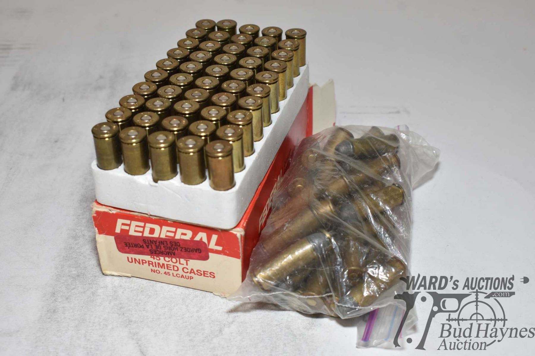 One full 50 count box of .45 colt reloads and a bag w/ 36 .45 colt reloads