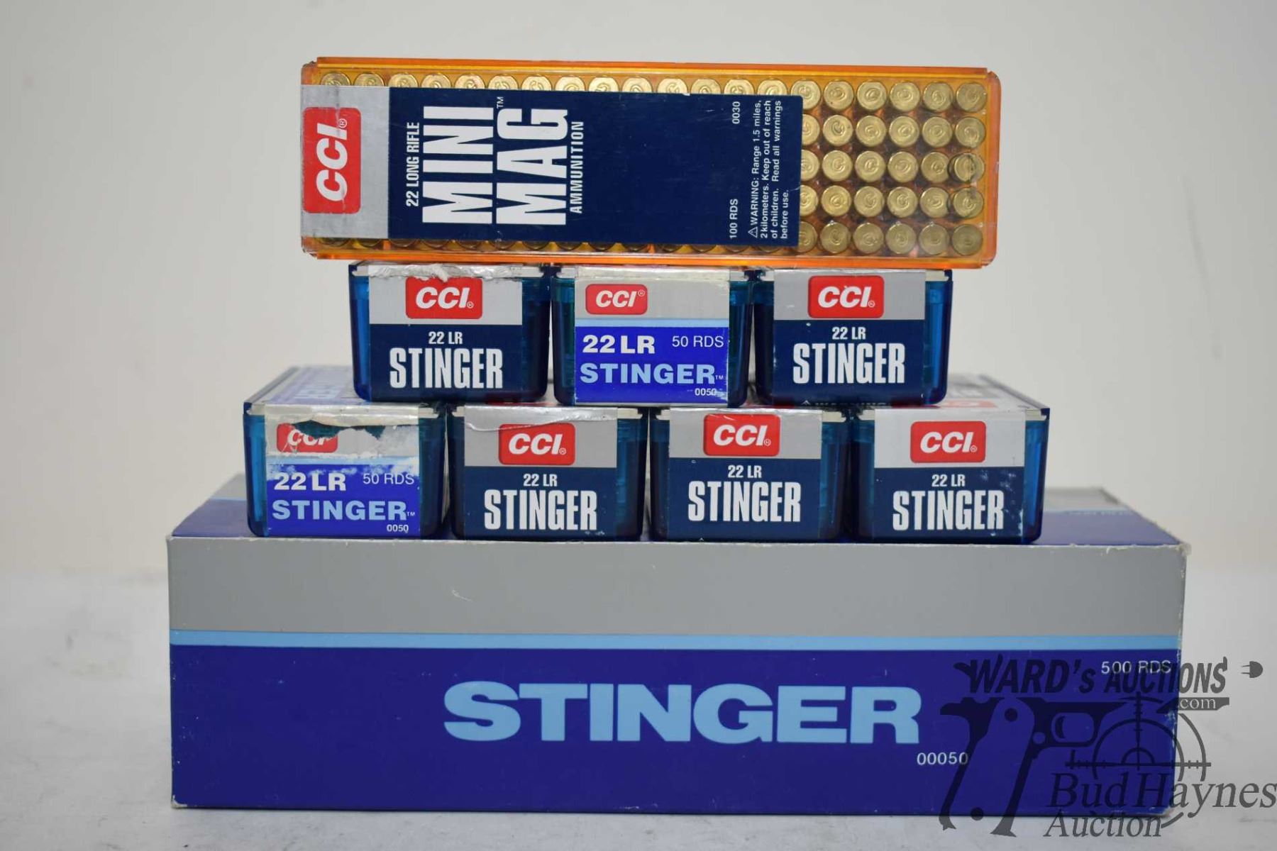 One full 500 count box CCI stinger .22 LR lead bulet, one full 100 count box CCI mini mag .22 LR and