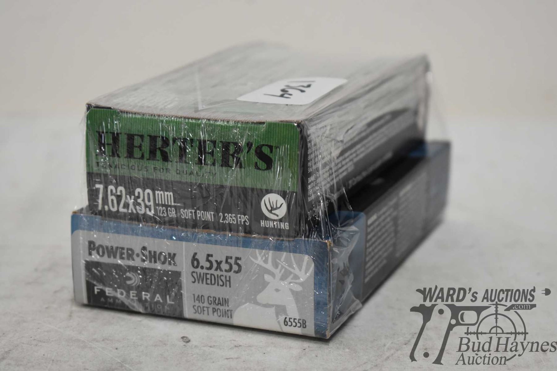 One partial 18 count box Federal powershok 6.5 x 55 140 gr soft point and a full 20 count box Herter's 7.62 x 39 123 gr soft point