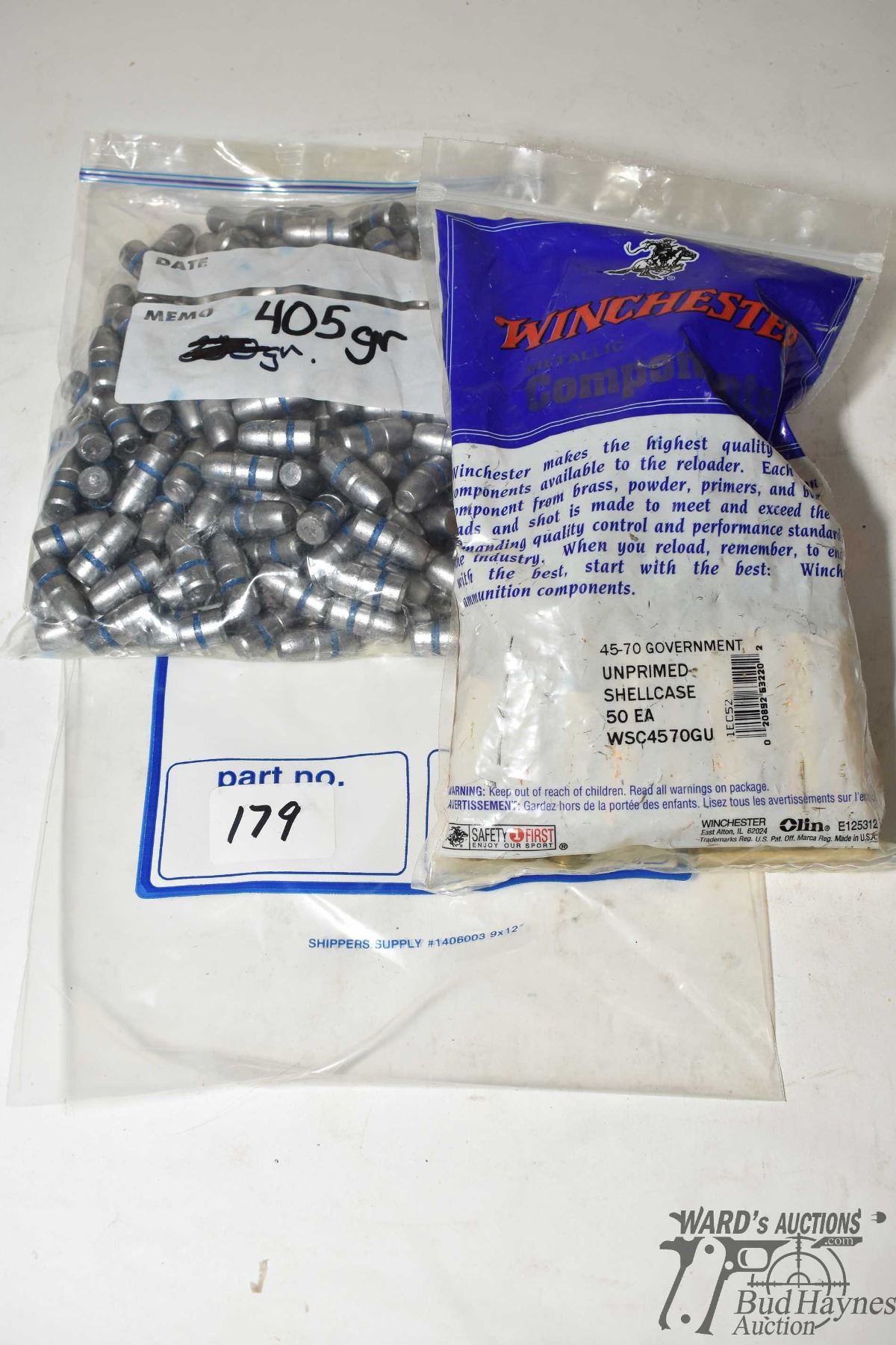 One partial bag of 41 Winchester .45-70 gov and a bag of approx. 150 .45 cal 405 gr bullets