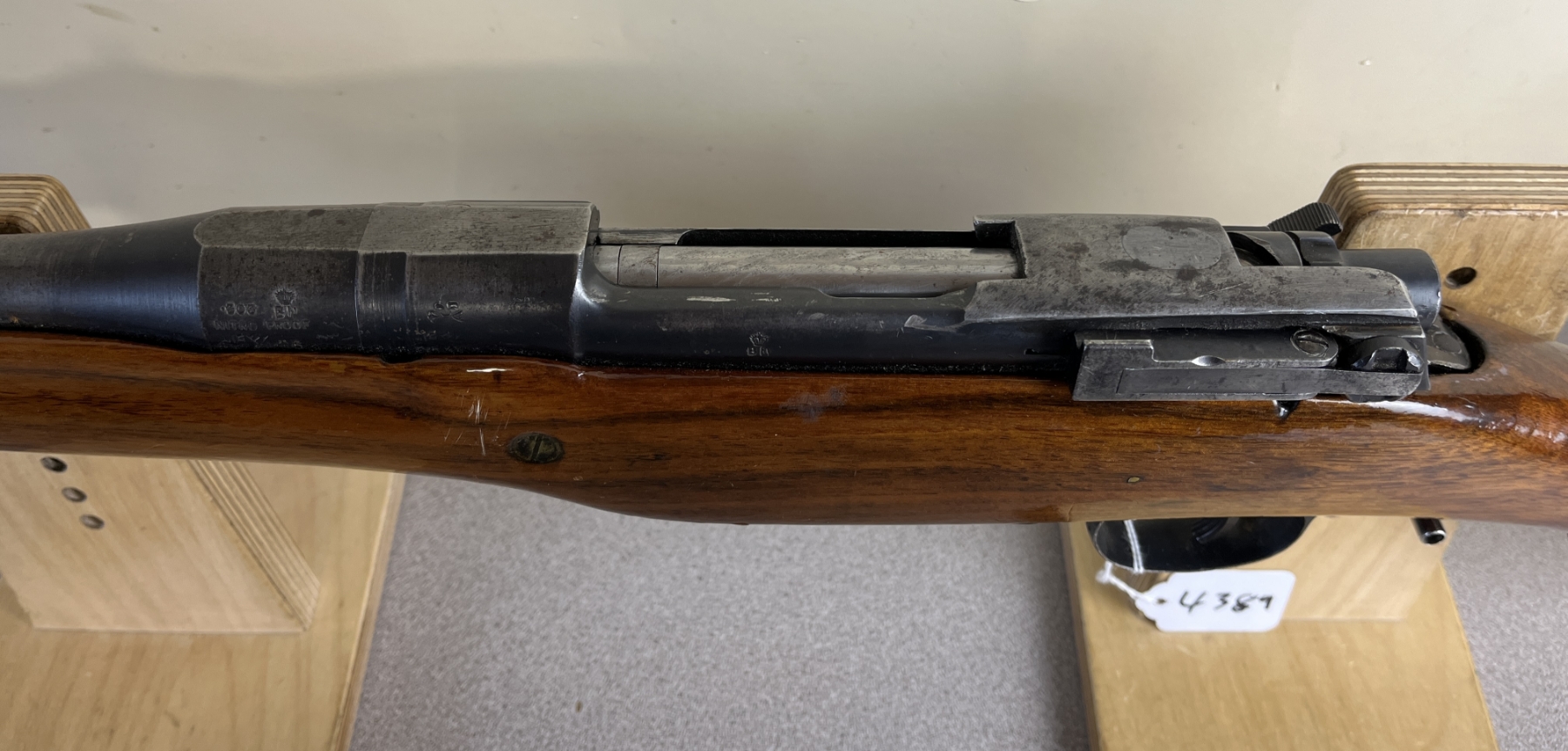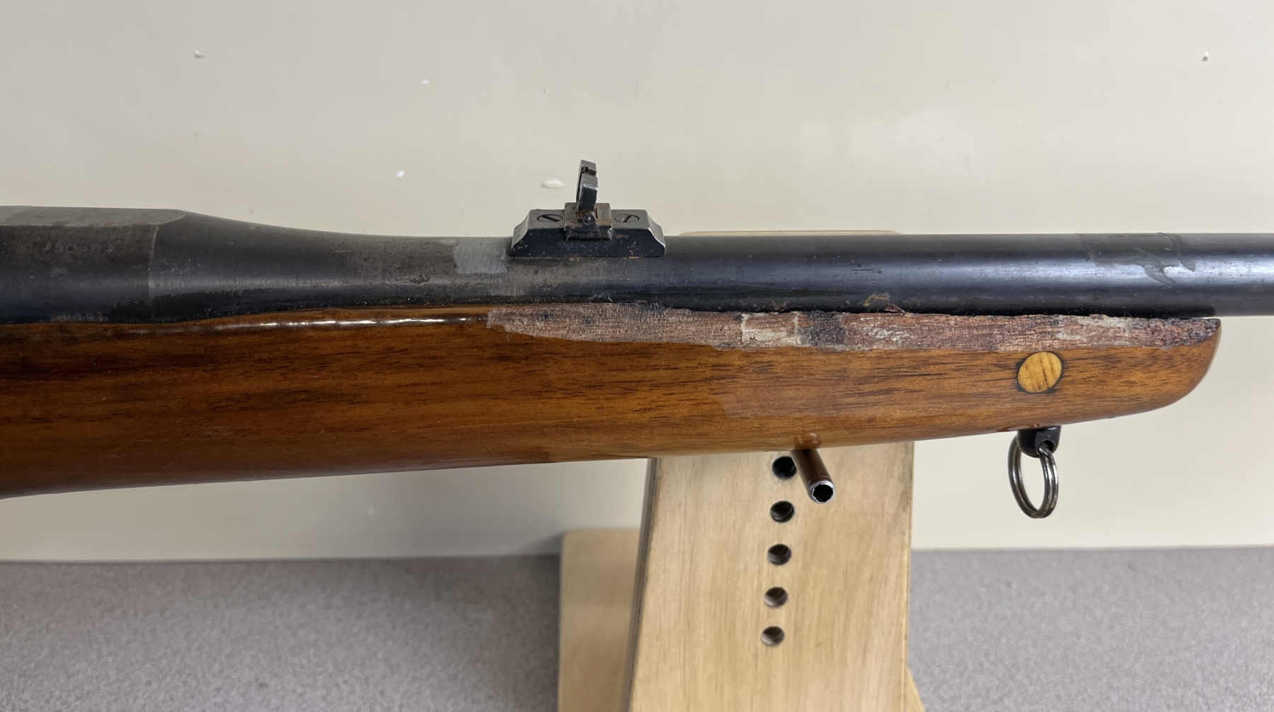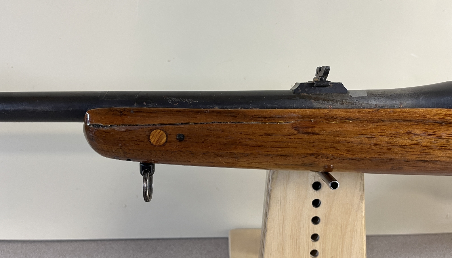 CONDITION: F OVERALL, BORE P-F. NOTE: FORESTOCK SHOWS MAJOR CHIP ON RIGHT SIDE AND MAJOR CRACK ON LEFT SIDE, RECEIVER HAS BEEN MILLED. SPECS: 21IN BBL. EXTRAS: NONE. S/N: 358663