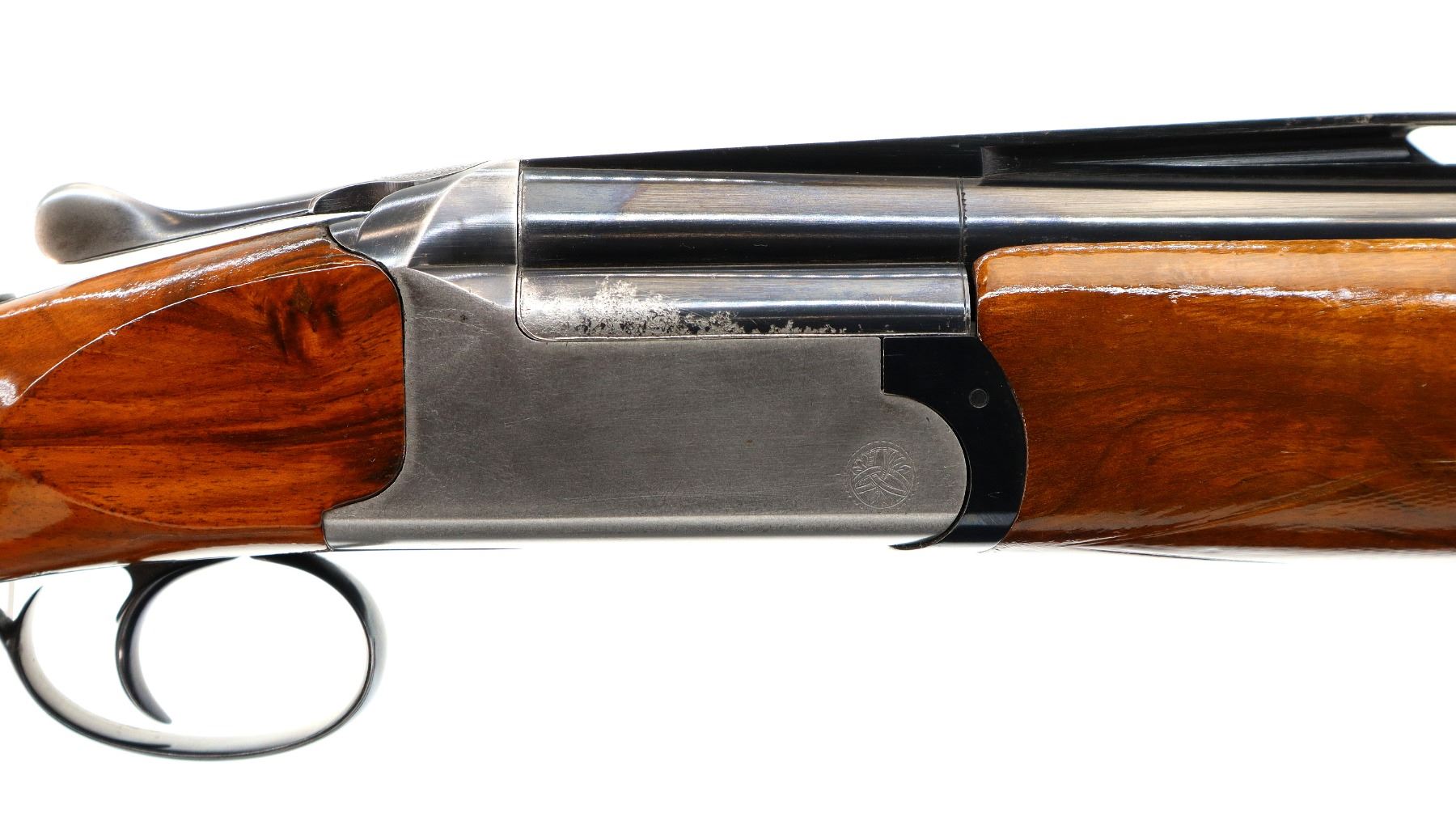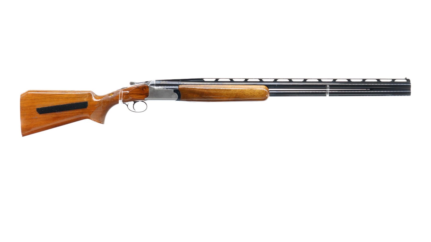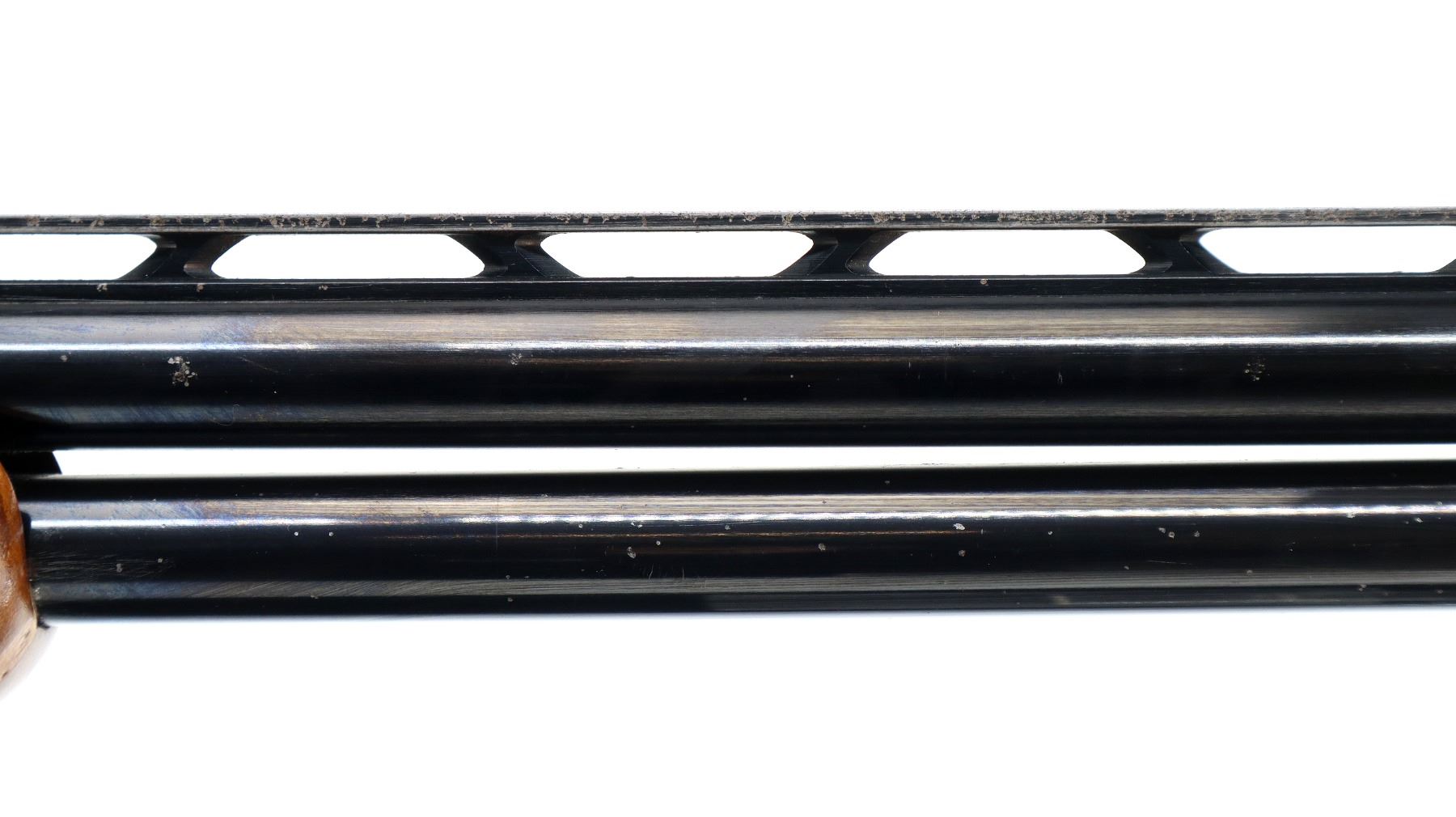 Main Description: White front and silver mid rib beads, polish blued finish, raised vent rib, receiver polished silver, only lower barrel fires requires repair, has ejectors and single trigger. Two piece wood stocks, checkered forearm and pistol grip appears to have been repaired, Velcro on both sides of stock, missing butt plate and screws, 13.5" LOP, includes trigger mech case.
