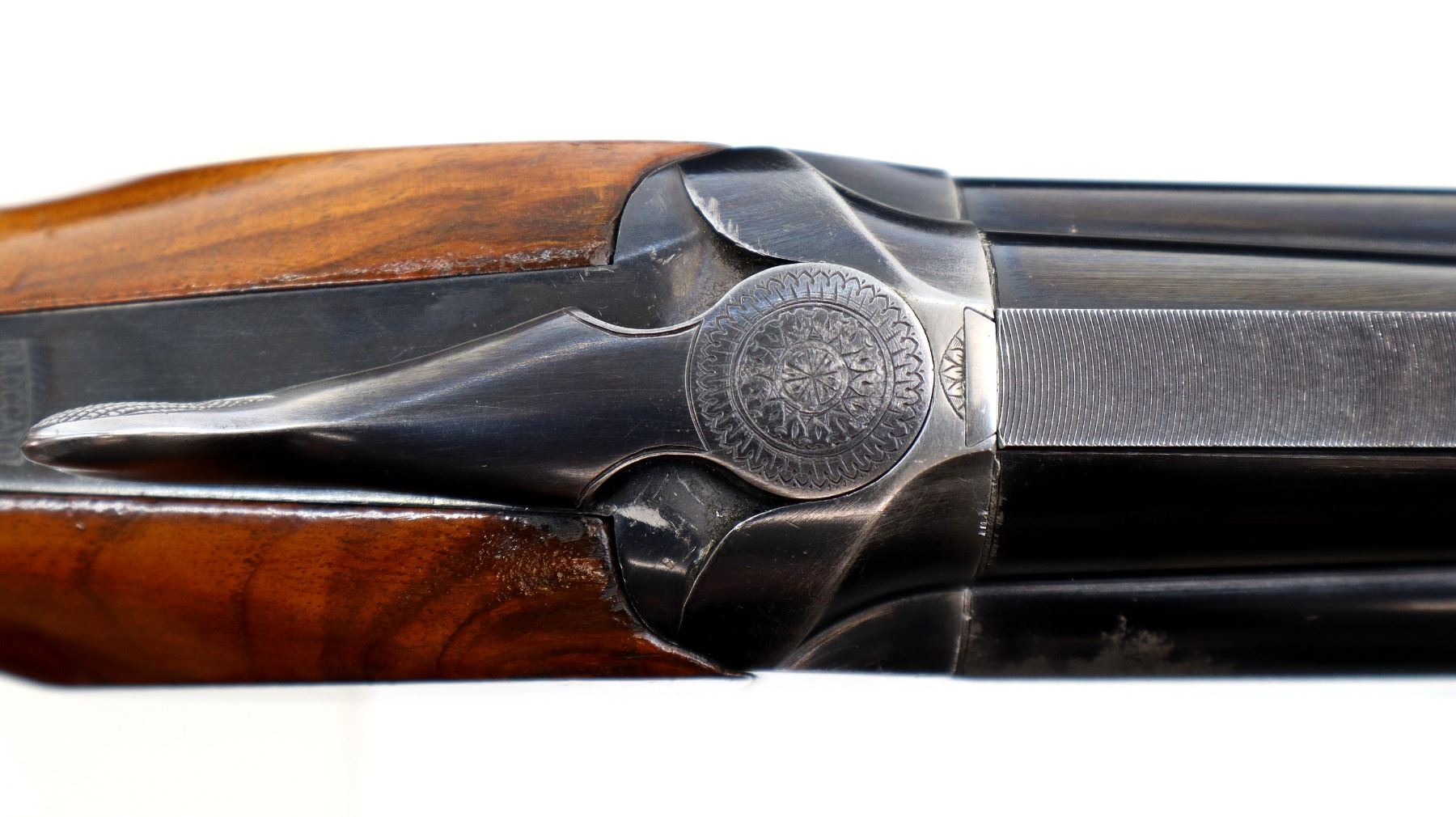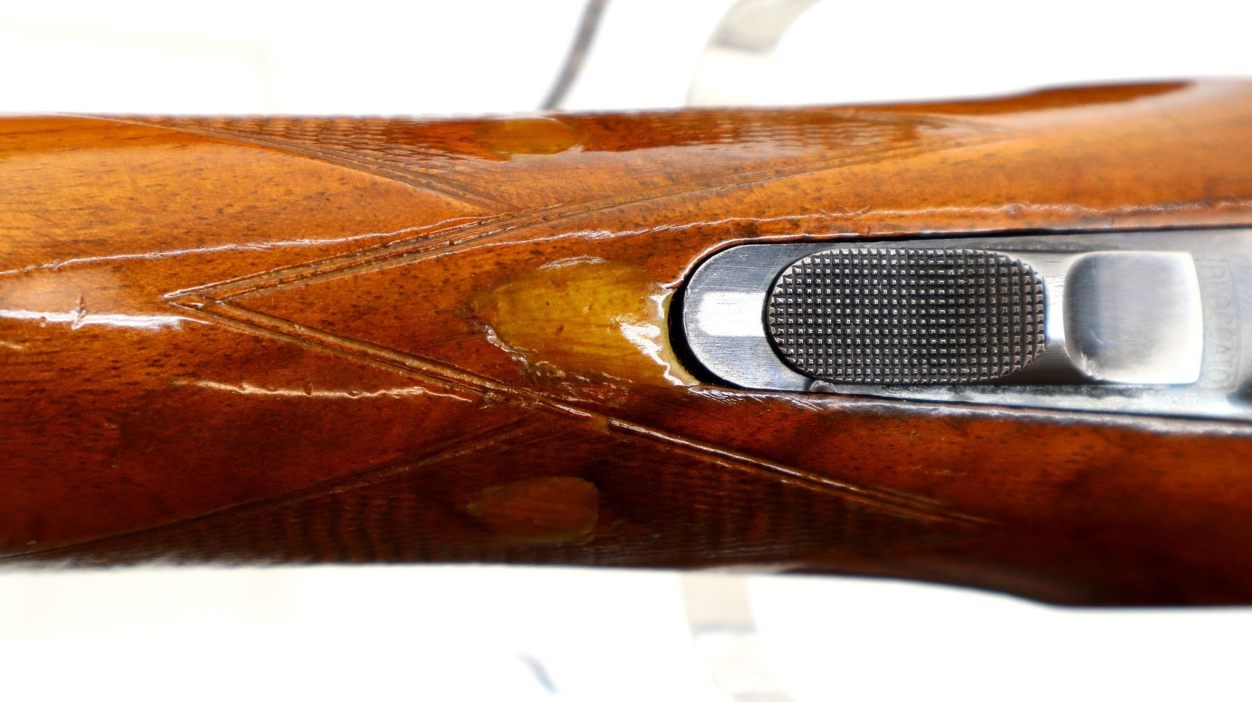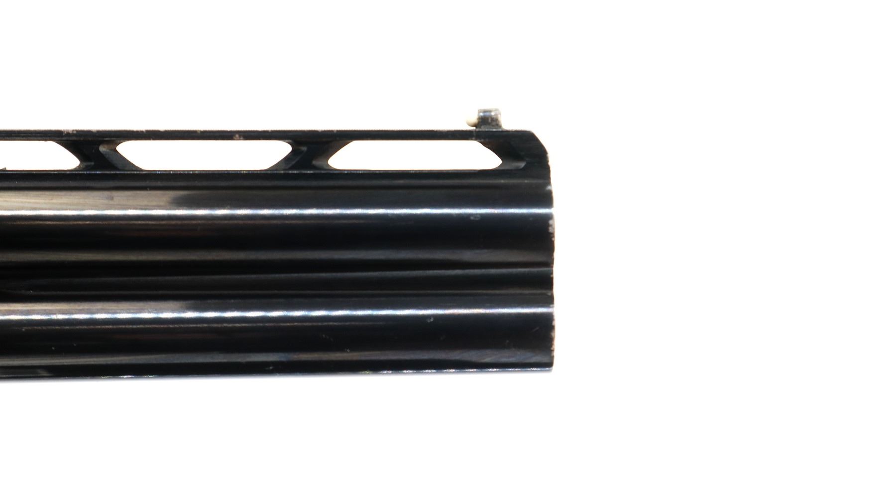 Main Description: White front and silver mid rib beads, polish blued finish, raised vent rib, receiver polished silver, only lower barrel fires requires repair, has ejectors and single trigger. Two piece wood stocks, checkered forearm and pistol grip appears to have been repaired, Velcro on both sides of stock, missing butt plate and screws, 13.5" LOP, includes trigger mech case.