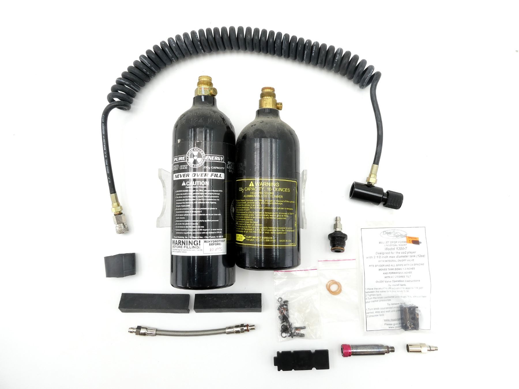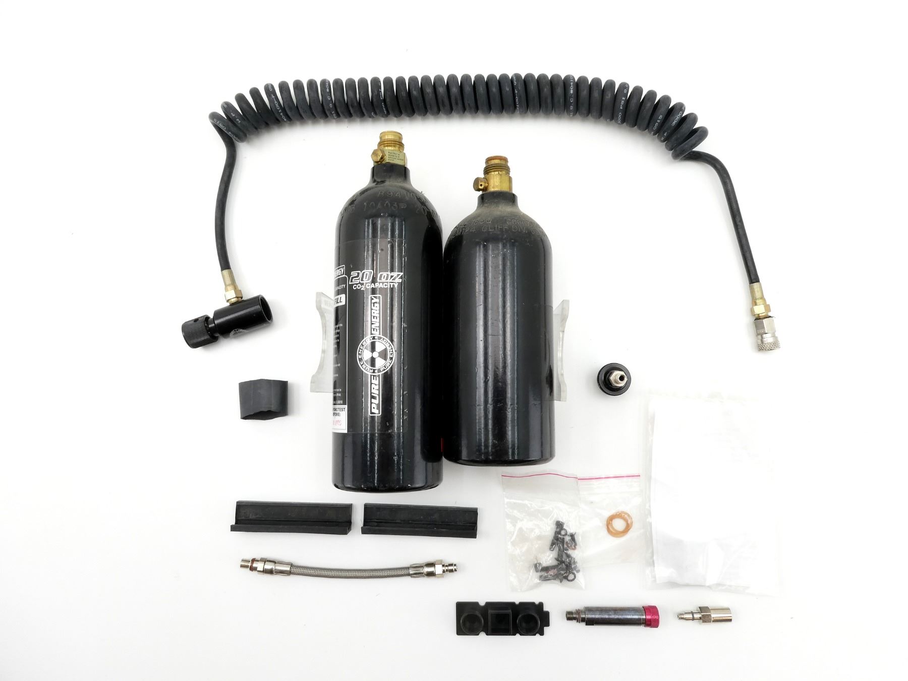 LOT INCLUDES; (1) PURE ENERGY 20 OZ CO2 CYLINDER, (1) CATALINA CYLINDERS 16 OZ CO2 CYLINDER, (1) PURE ENERGY CO2 CYLINDER ATTACHMENT & (1) DEAD ON PAINTBALL BULLET DROP FORWARD UNIVERSAL MOUNT, MODEL 1300-7, ETC. SEE PHOTOS.