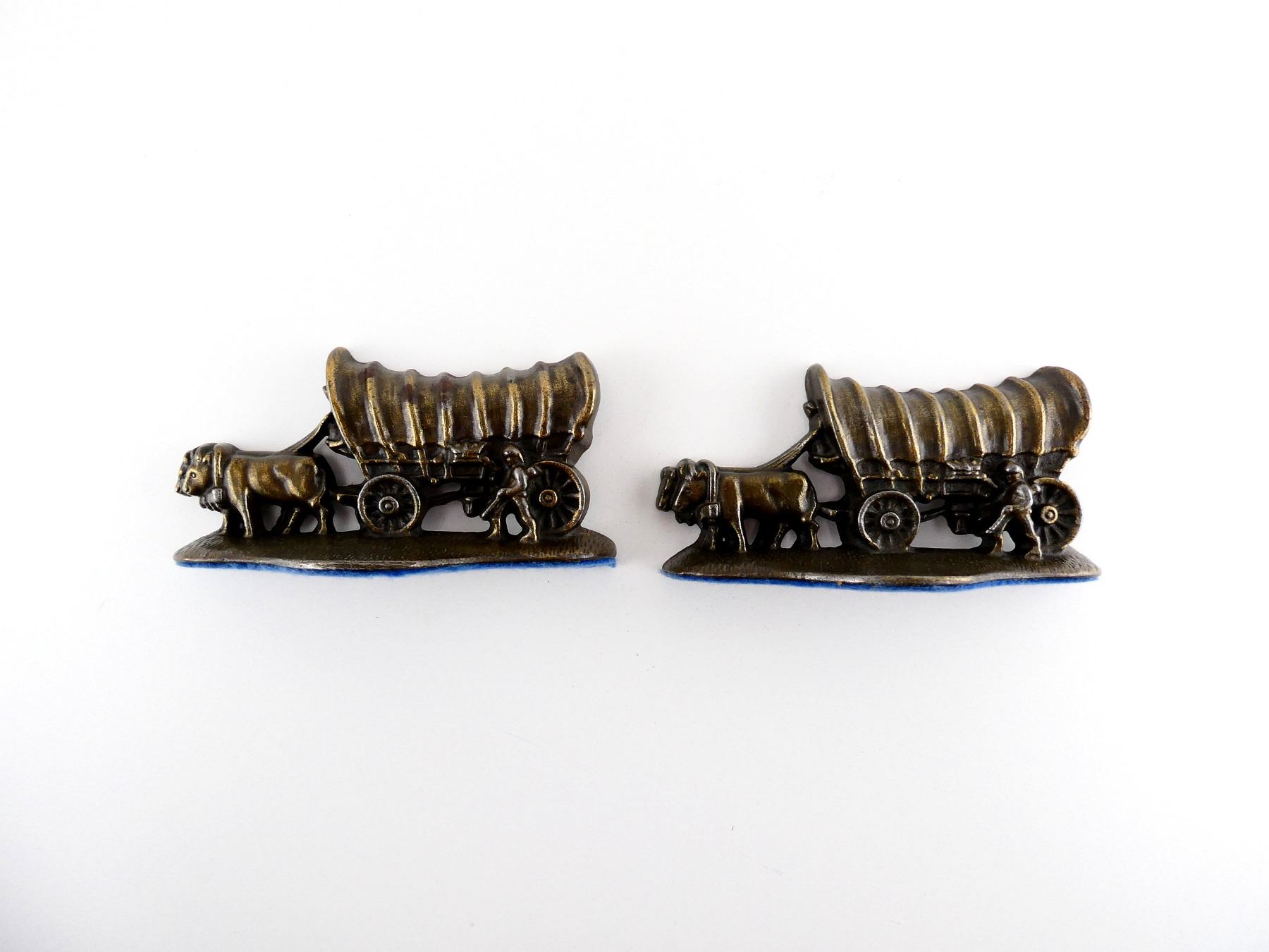 PIONEER CONESTOGA WAGON AND OXEN BOOKENDS LOT