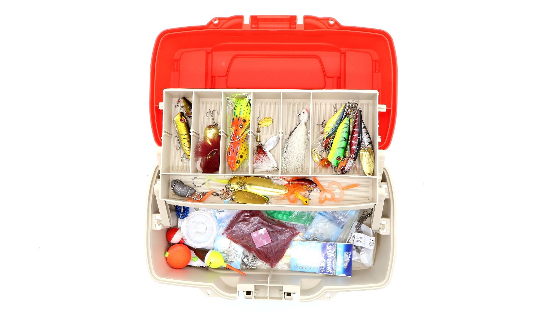 PLANO TACKLE BOX WITH ASSORTED FISHING TACKLE LOT