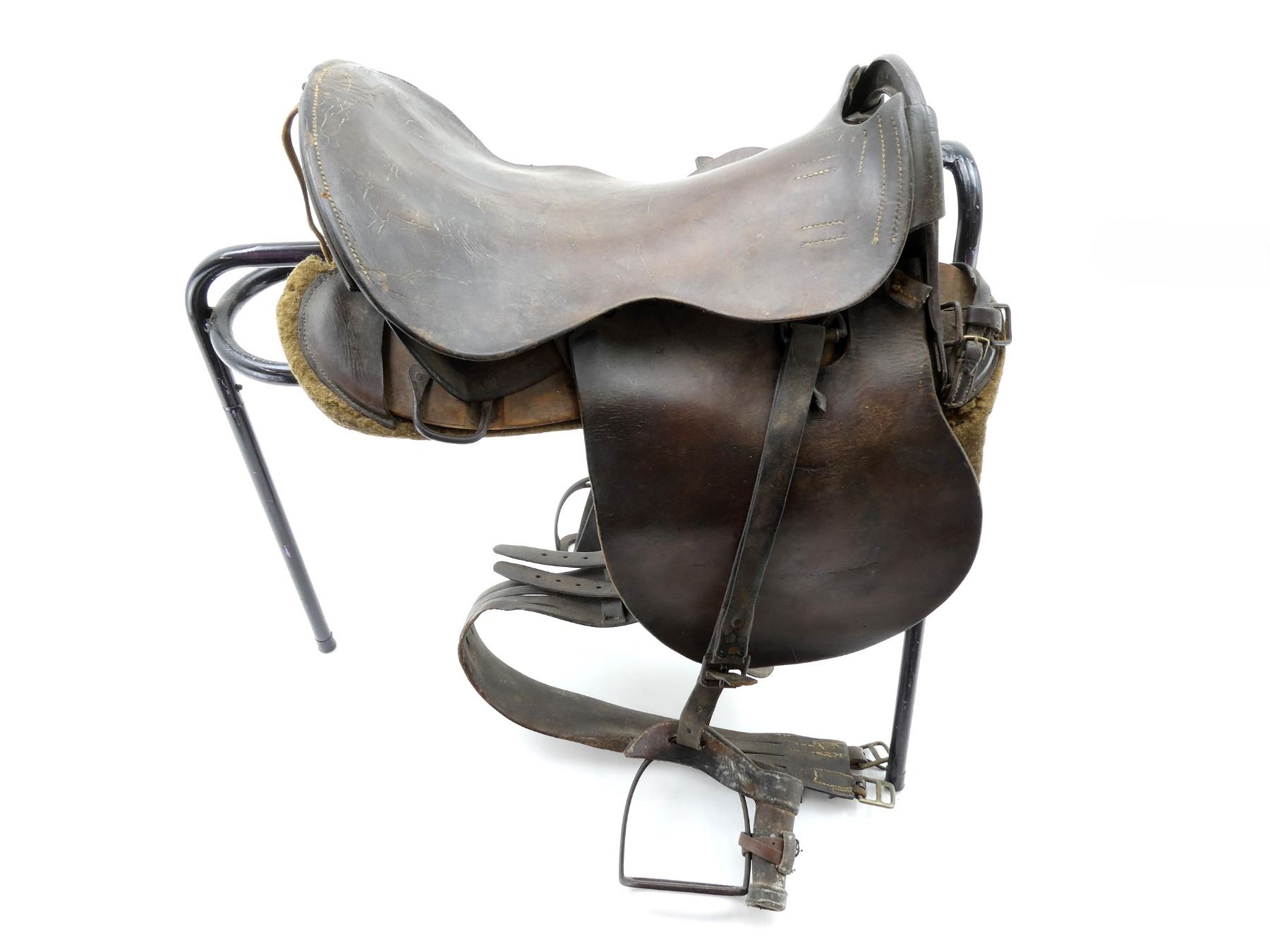 PRE-WWI / WWI BRITISH MILITARY SADDLE WITH STAND