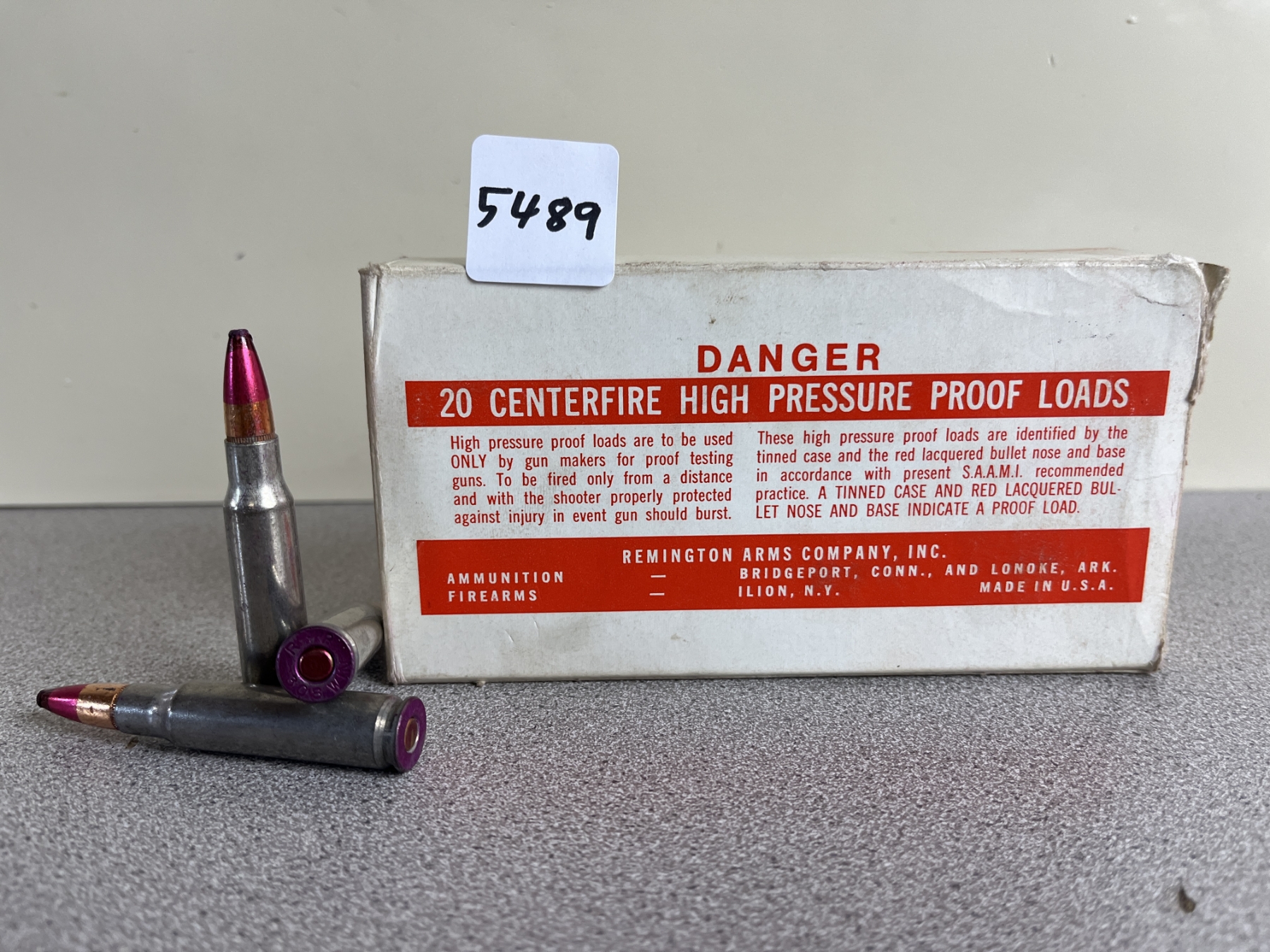 DANGER HIGH PRESSURE PROOF LOAD FOR GUN SMITH TESTING ONLY, NOT TO BE FIRED BY HAND, ONLY FOR USE INSIDE PROOF BOX BY QUALIFIED PERSONNEL