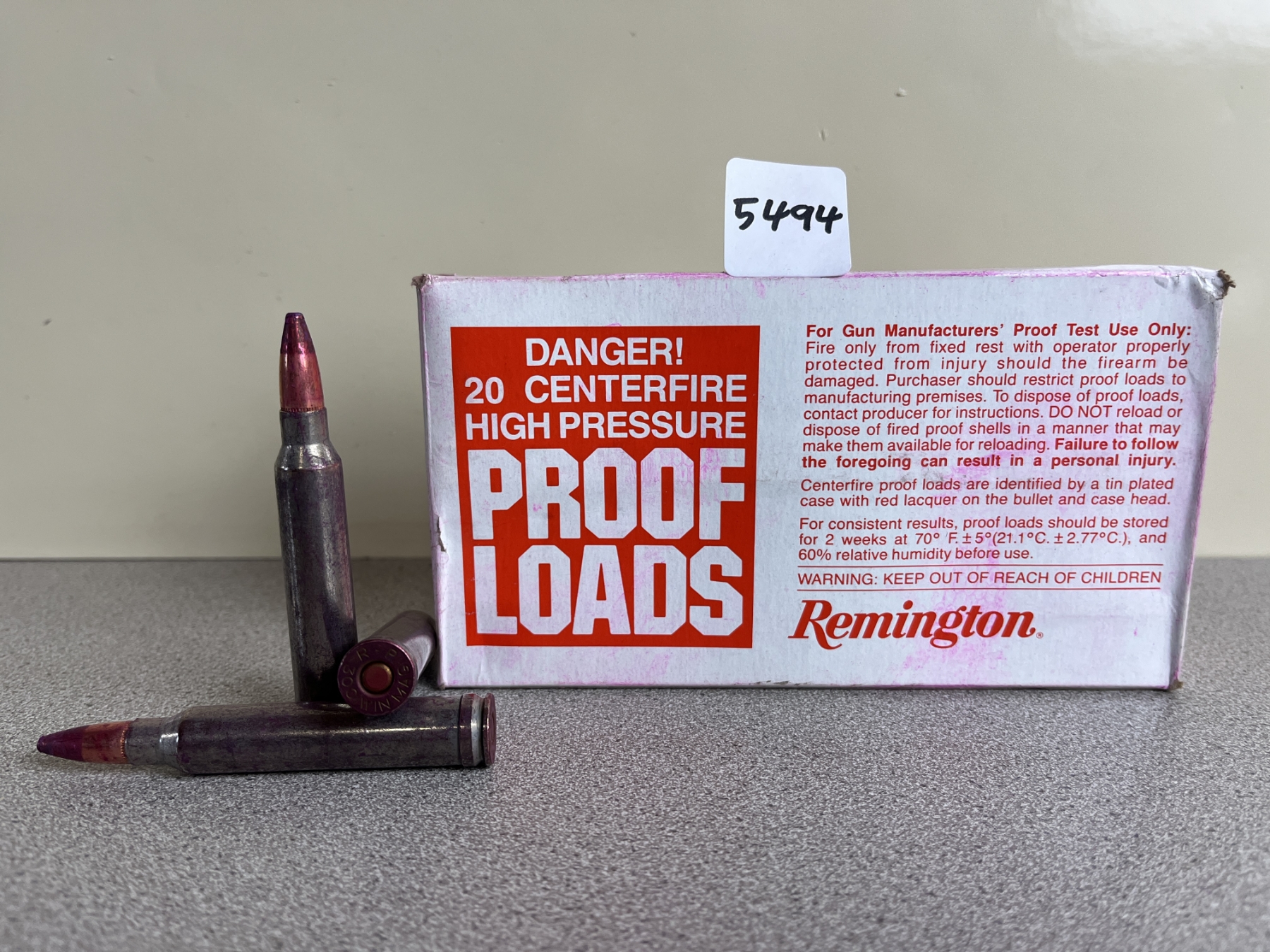 DANGER HIGH PRESSURE PROOF LOAD FOR GUN SMITH TESTING ONLY, NOT TO BE FIRED BY HAND, ONLY FOR USE INSIDE PROOF BOX BY QUALIFIED PERSONNEL