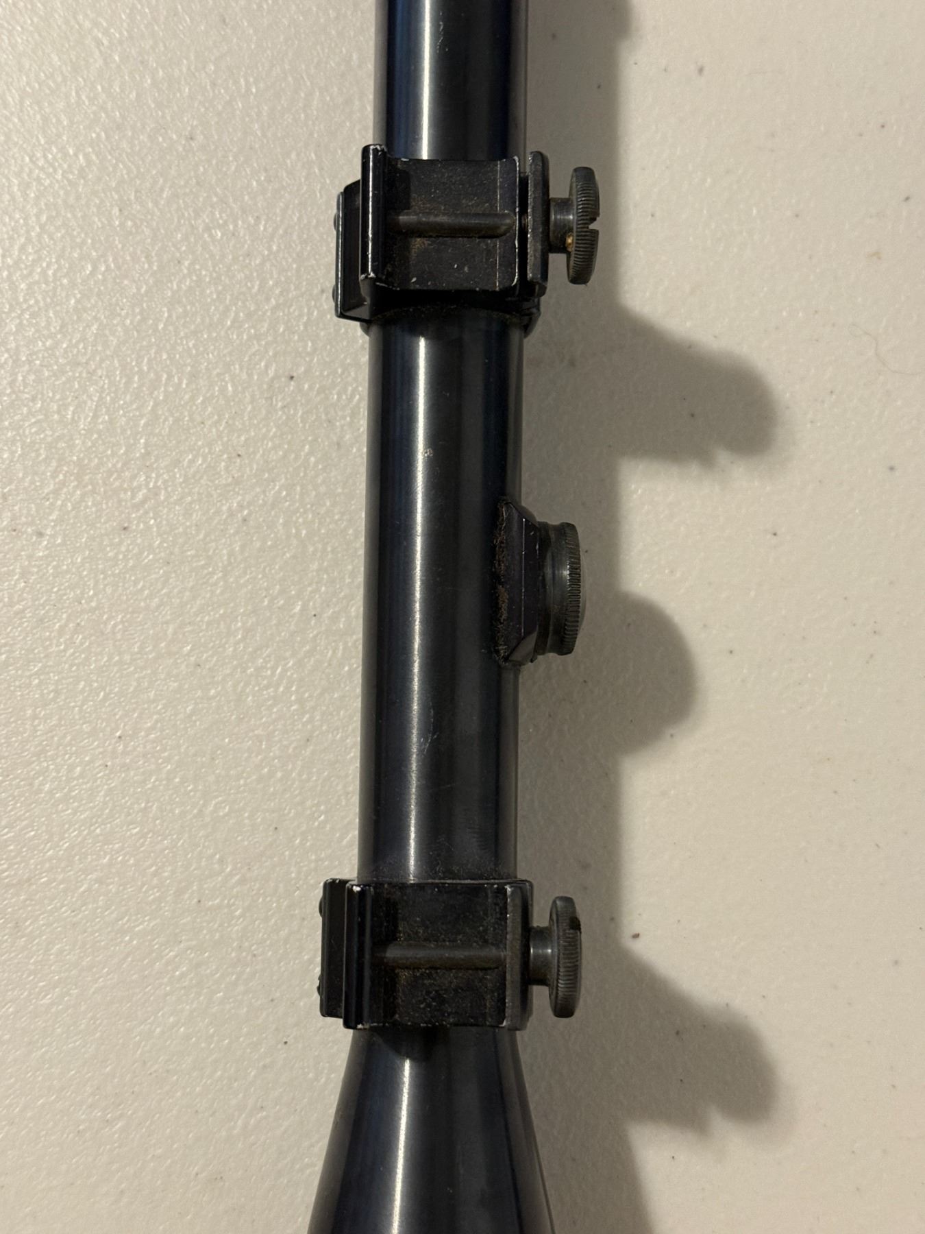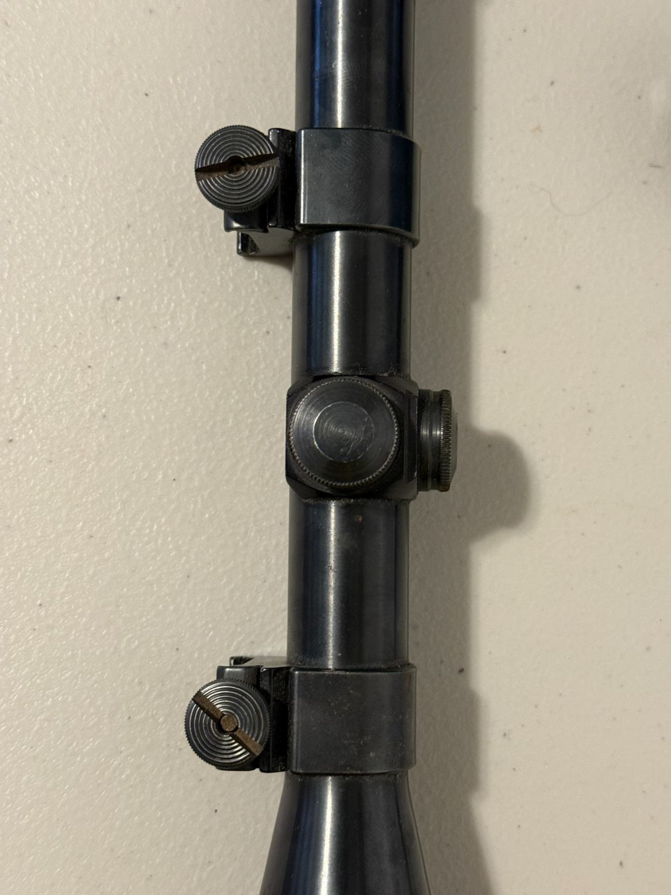 Condition: Optics appear clear. Exterior in good shape. Mounted rings included. Ready for use