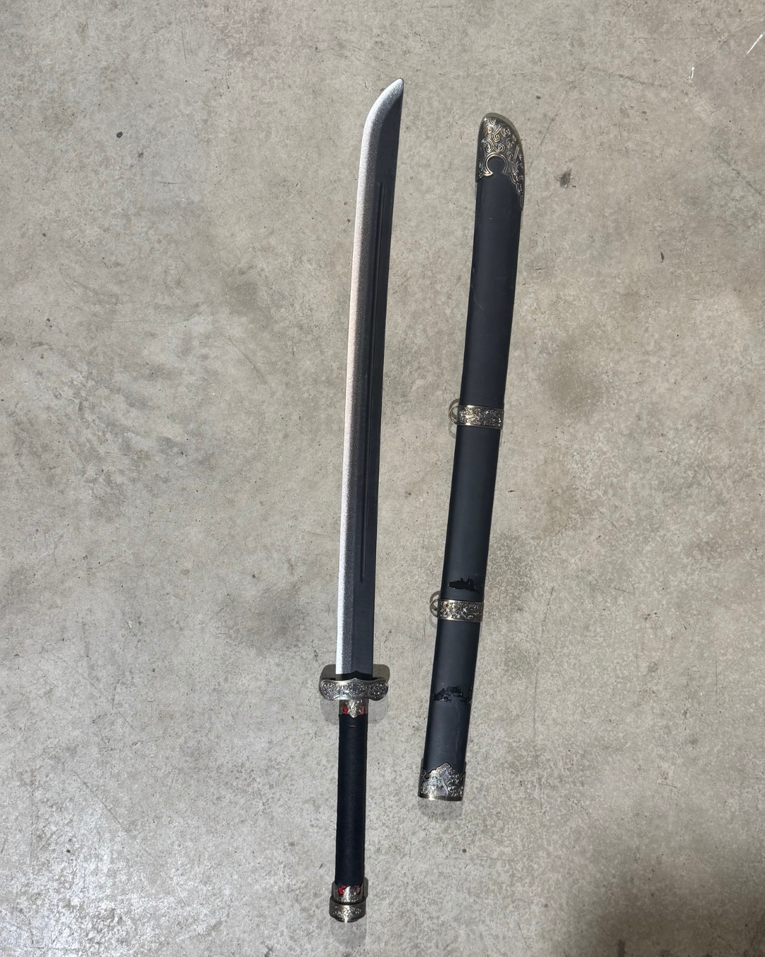 This is a super light sword made of plastic to practice your skills. The scabbard has 2 glue stains in the middle