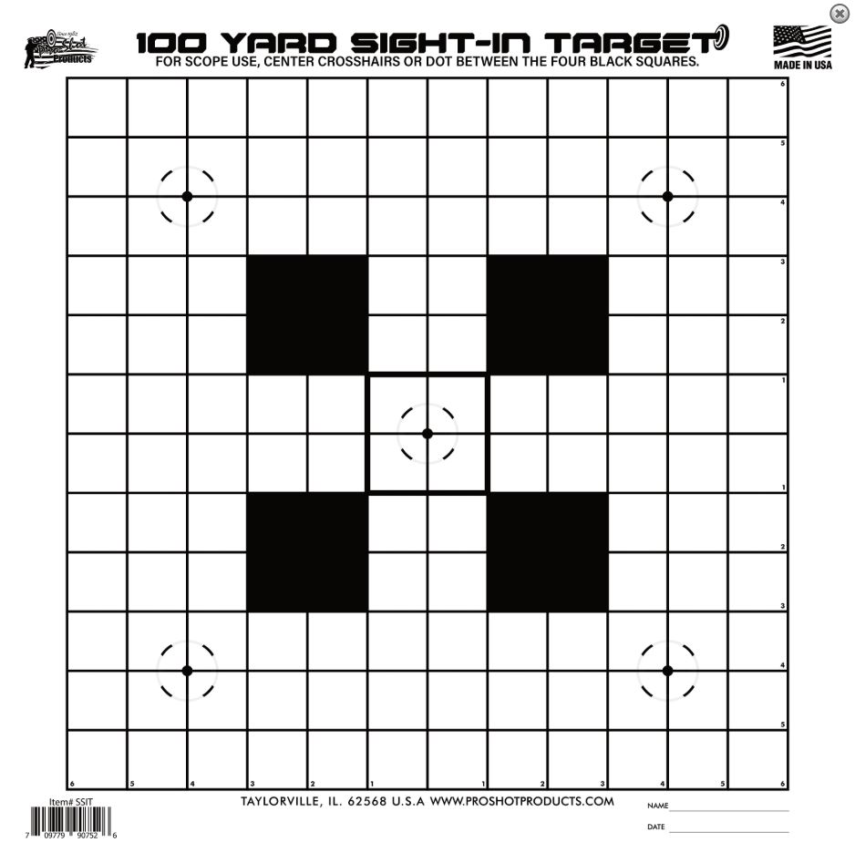 Proshot 1OOYD Sight-In Target 12PK Heavy Paper. This listing is for one brand new, unopened, factory sealed unit. UPC: 709779907526.