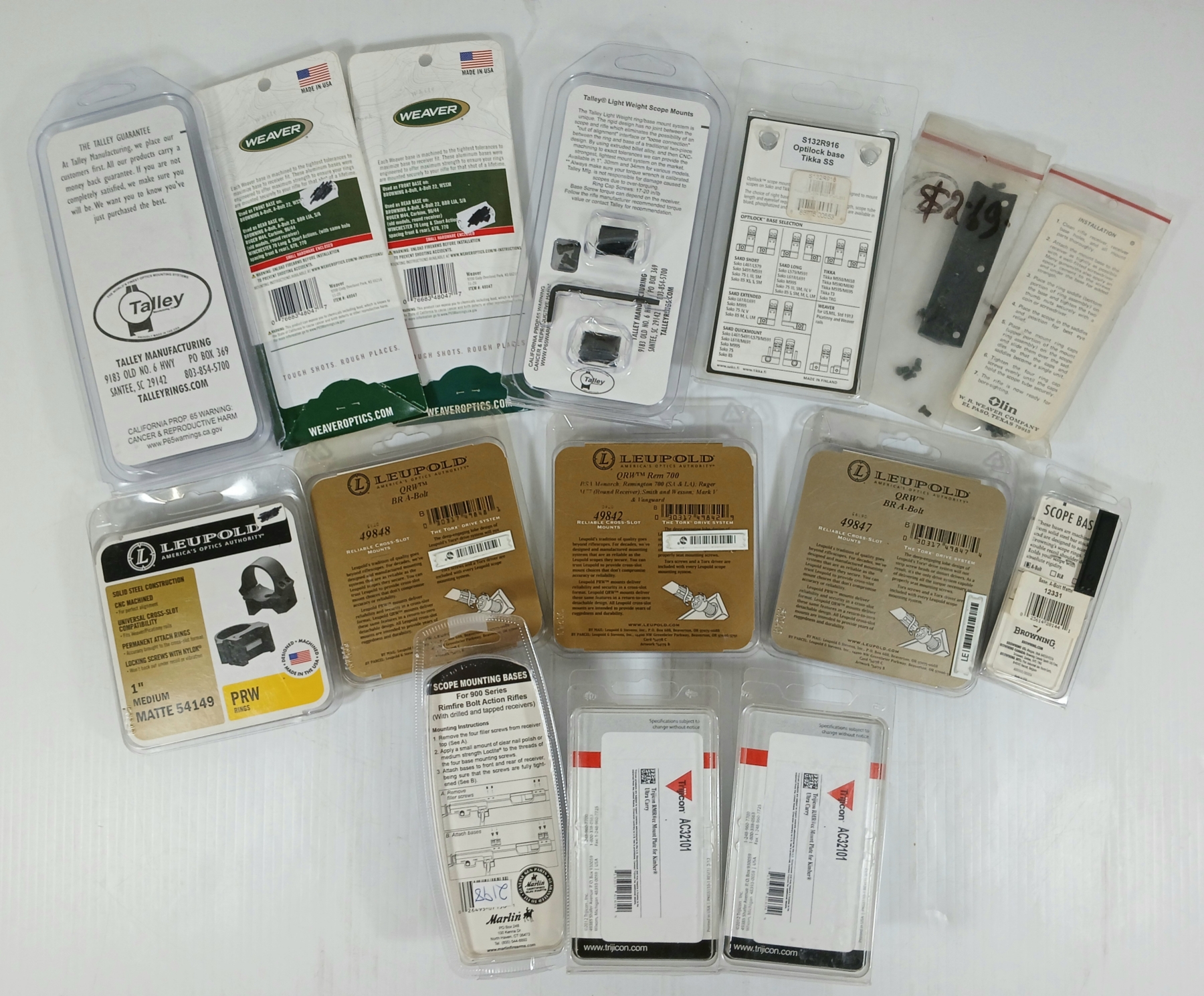 QTY OF SCOPE BASES / MOUNTS & RINGS - INCL LEUPOLD 1IN, WEAVER BROWNING A-BOLT, ETC