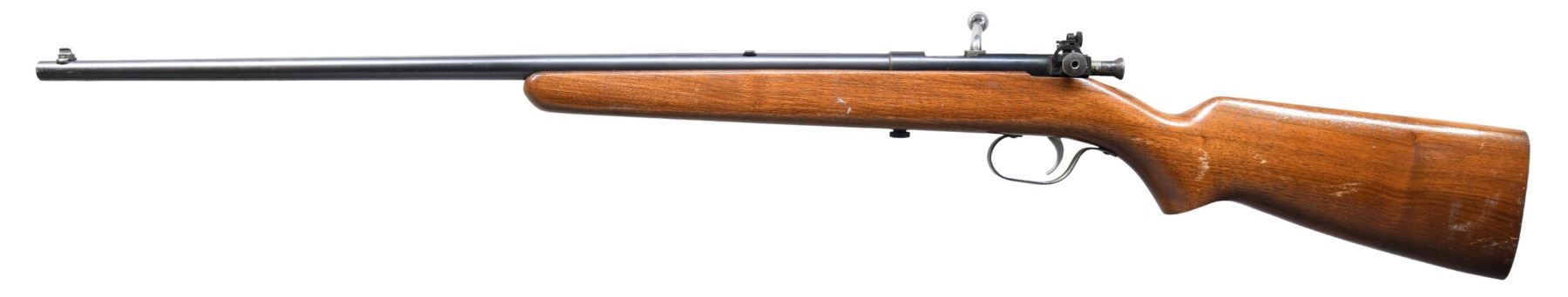 Cal. 22 S, L, LR. NSN. Brand name version of Marlin Model 80 rifle sold by Sears before WWII. Bbl. 24". Bead front sight & aperture receiver sight. Manually cocked bolt. Walnut stock. CONDITION: Good overall wood & metal finish with marks. Very good bore. (25-3181/MD). CURIO. $75-150.