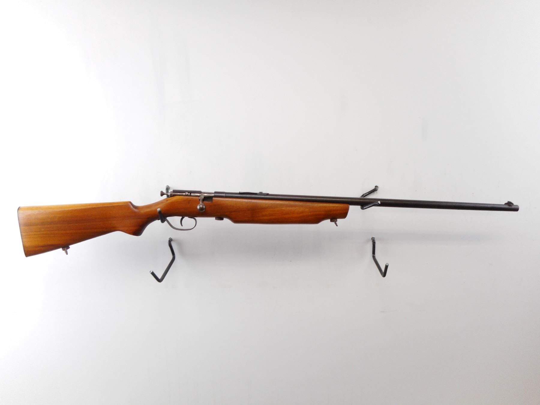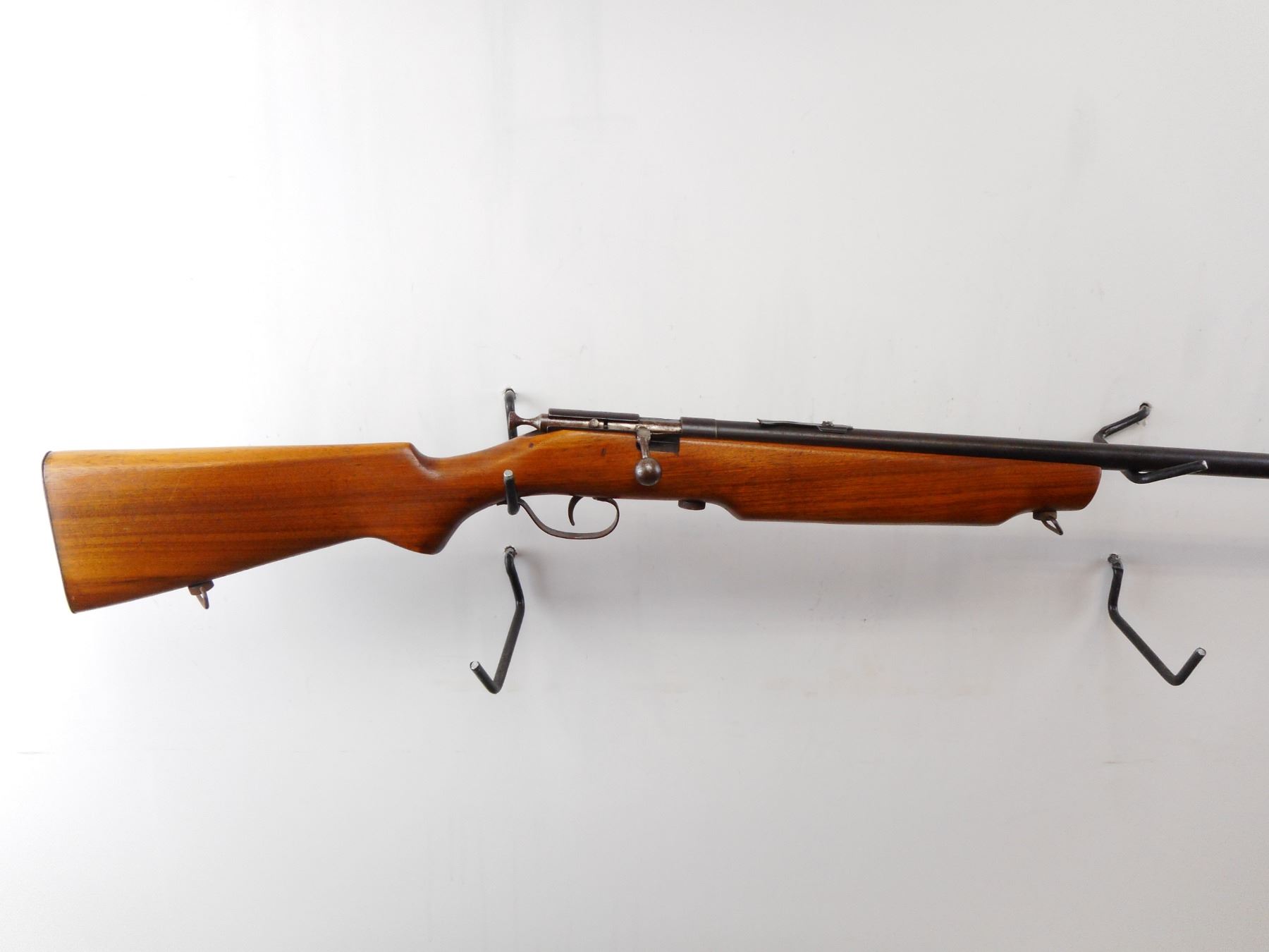 RANGER, MODEL: RANGER, CALIBER: 22LR, BORE VERY GOOD. BLADE FRONT SIGHT, BROKEN REAR SIGHT, SMOOTH ONE PIECE WOOD STOCK, SMOOTH STEEL BUTT PLATE, SLING SWIVELS. METAL FINISH TURNING BROWN WITH LIGHT RUST. STOCK SHOWS DINGS, SCRATCHES AND HANDLING MARKS, ACTION: BOLT ACTION - RIFLE, BARREL LENGTH: 27", CONDITION: 4/10, SERIAL # N/A, CLASS: CANADIAN NON RESTRICTED CLASS