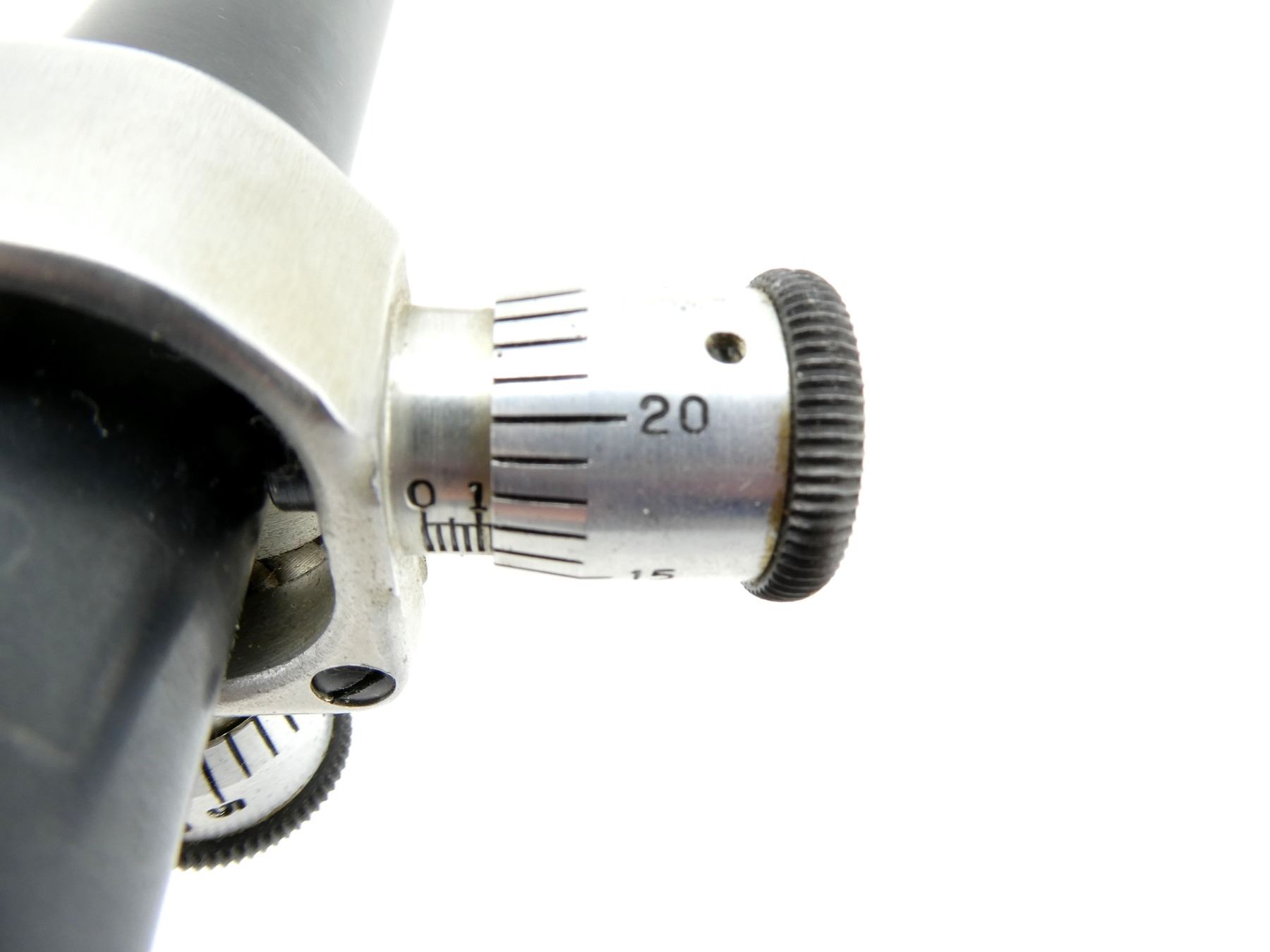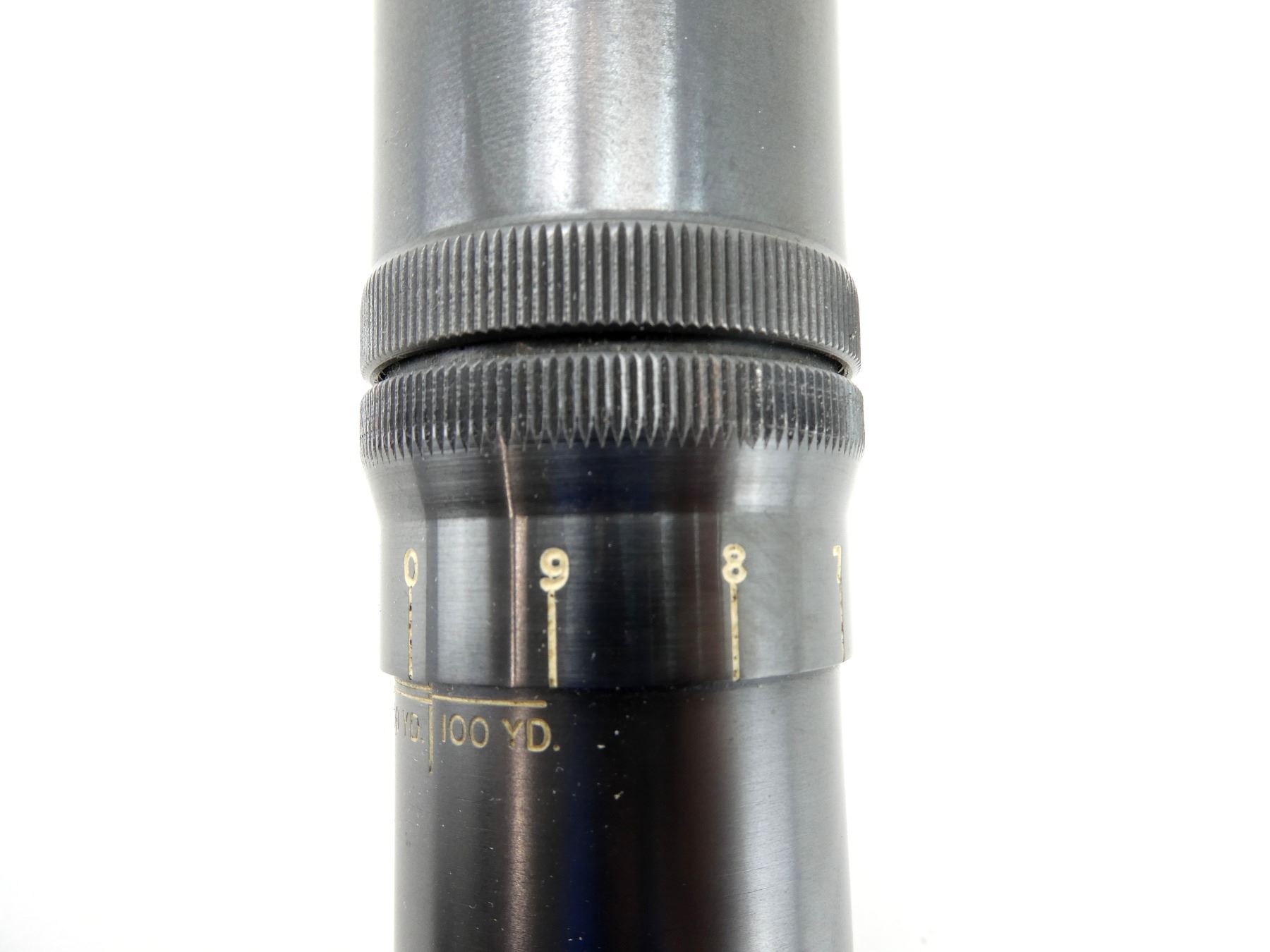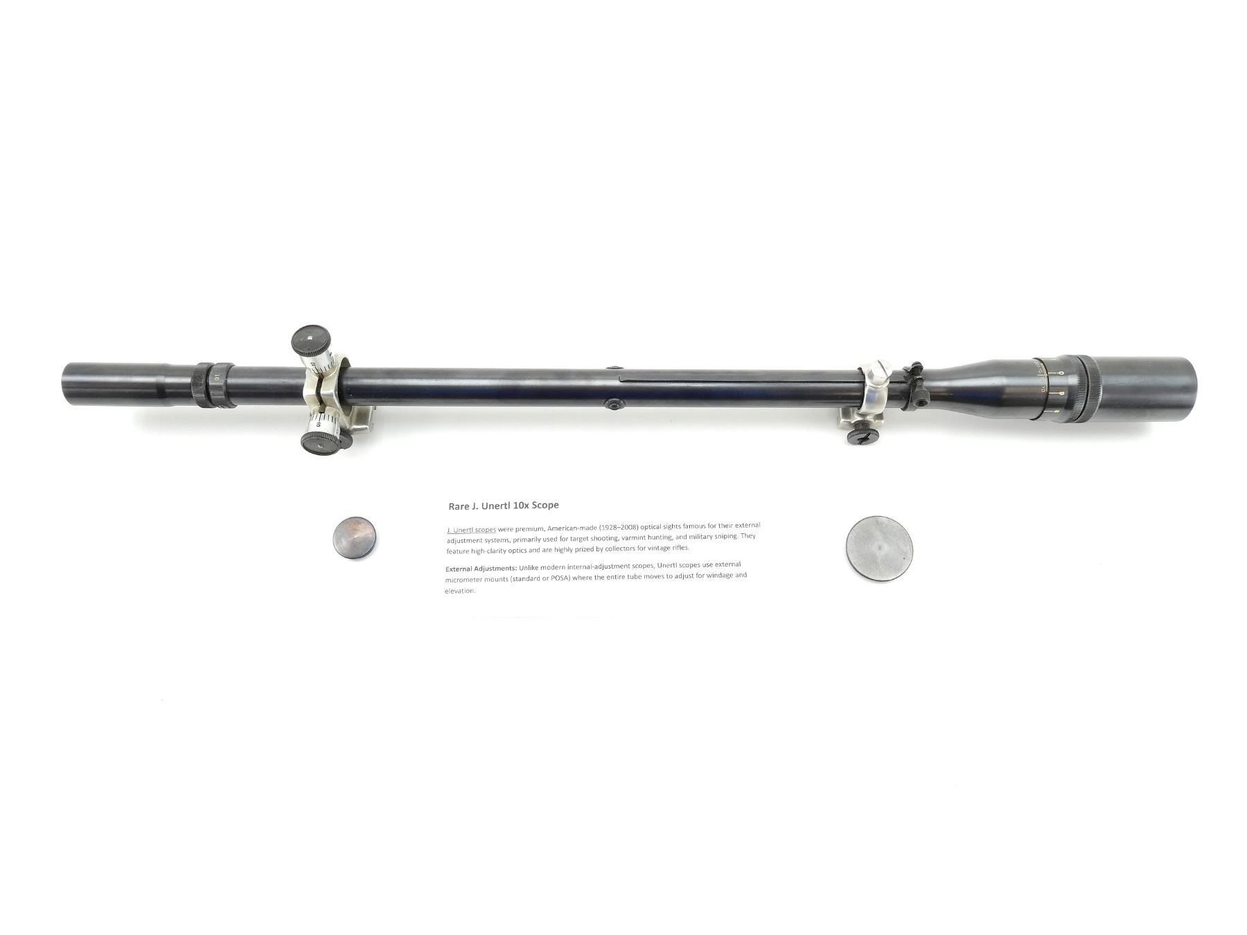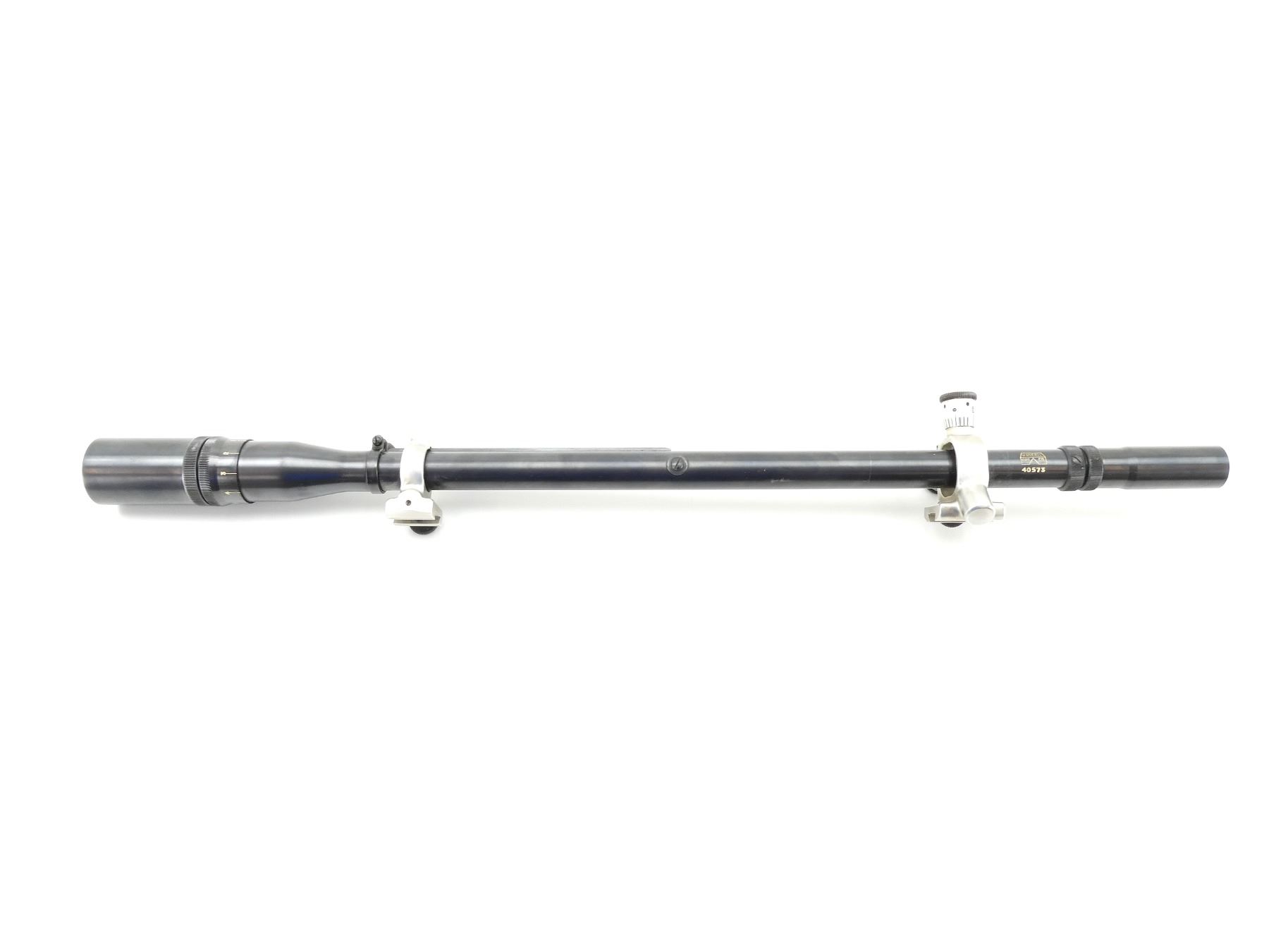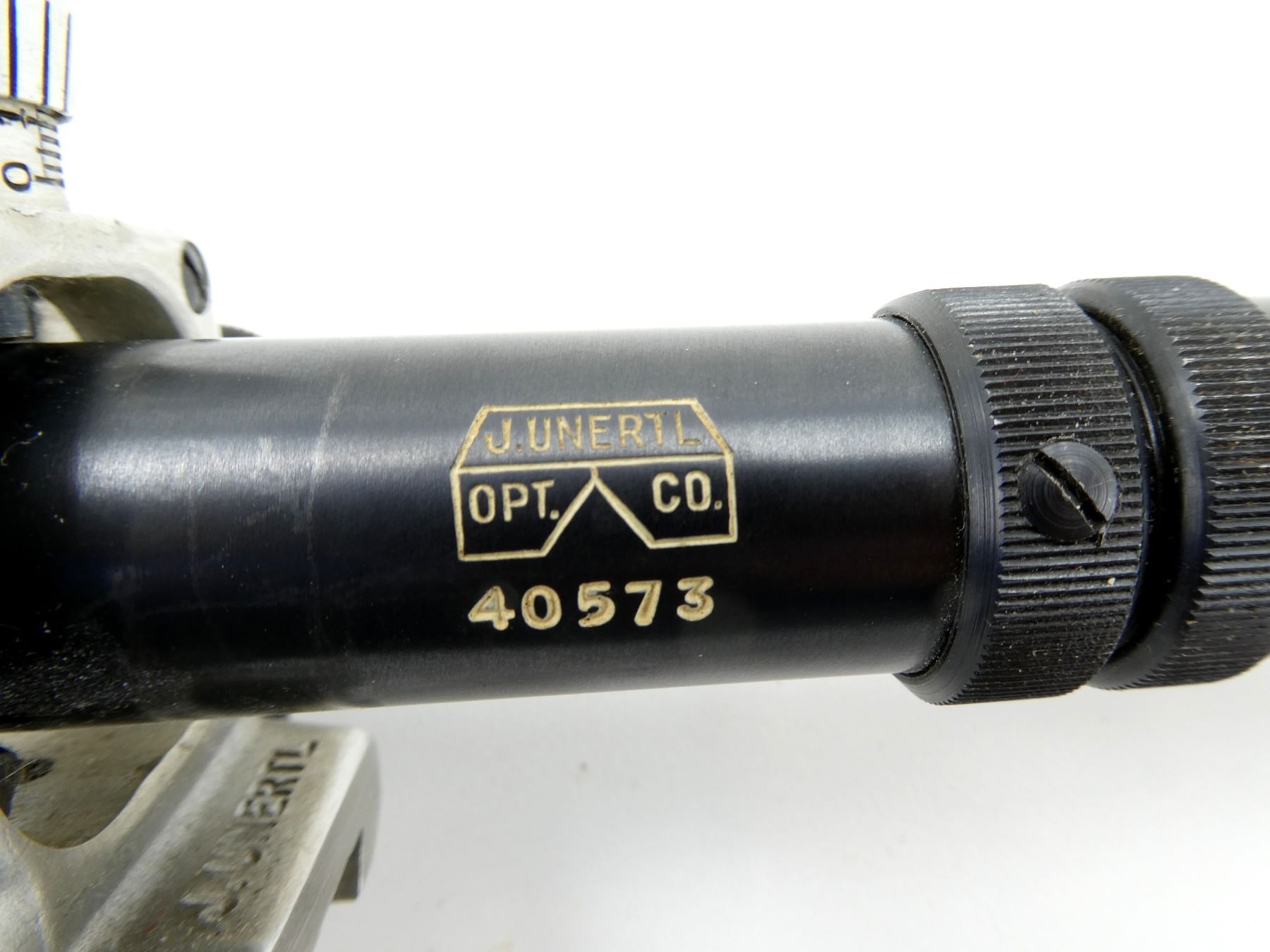 (1) CLEAR OPTICS, FINE CROSS HAIR RETICLE, BLUED STEEL CONSTRUCTION, ADJUSTABLE OBJECTIVE, UNERTL RINGS ATTACHED, REAR HAS ADJUSTABLE WINDAGE & ELEVATION - WORKS, SERIAL #: 40573. MAY REQUIRE FITTING. SEE PHOTOS.