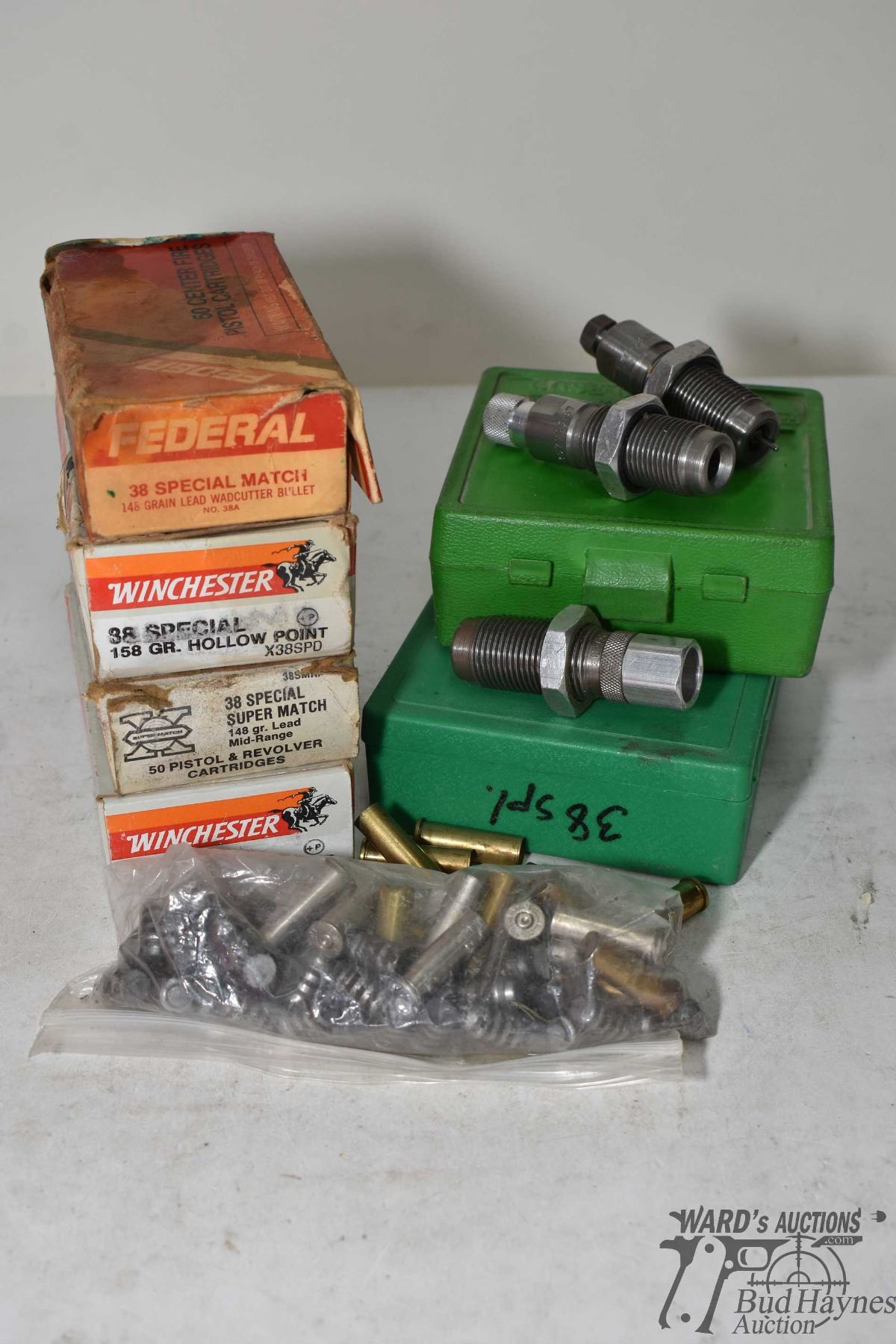 RCBS .38 SPL die set, Lee .38 SPL die set, 300 plus brass and 50 lead bullets