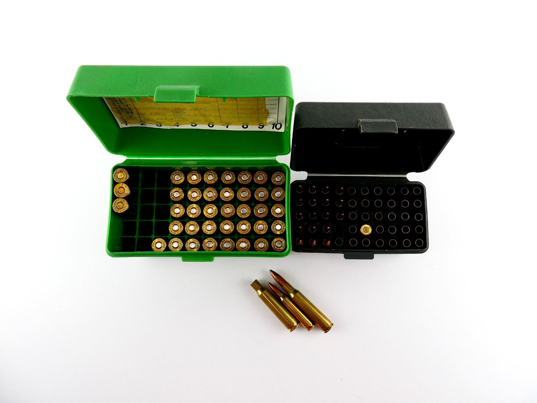 RELOADED ASSORTED .223 REM (5.56MM) / 7MM MAUSER AMMO AND PRIMED / NON-PRIMED BRASS CASES LOT