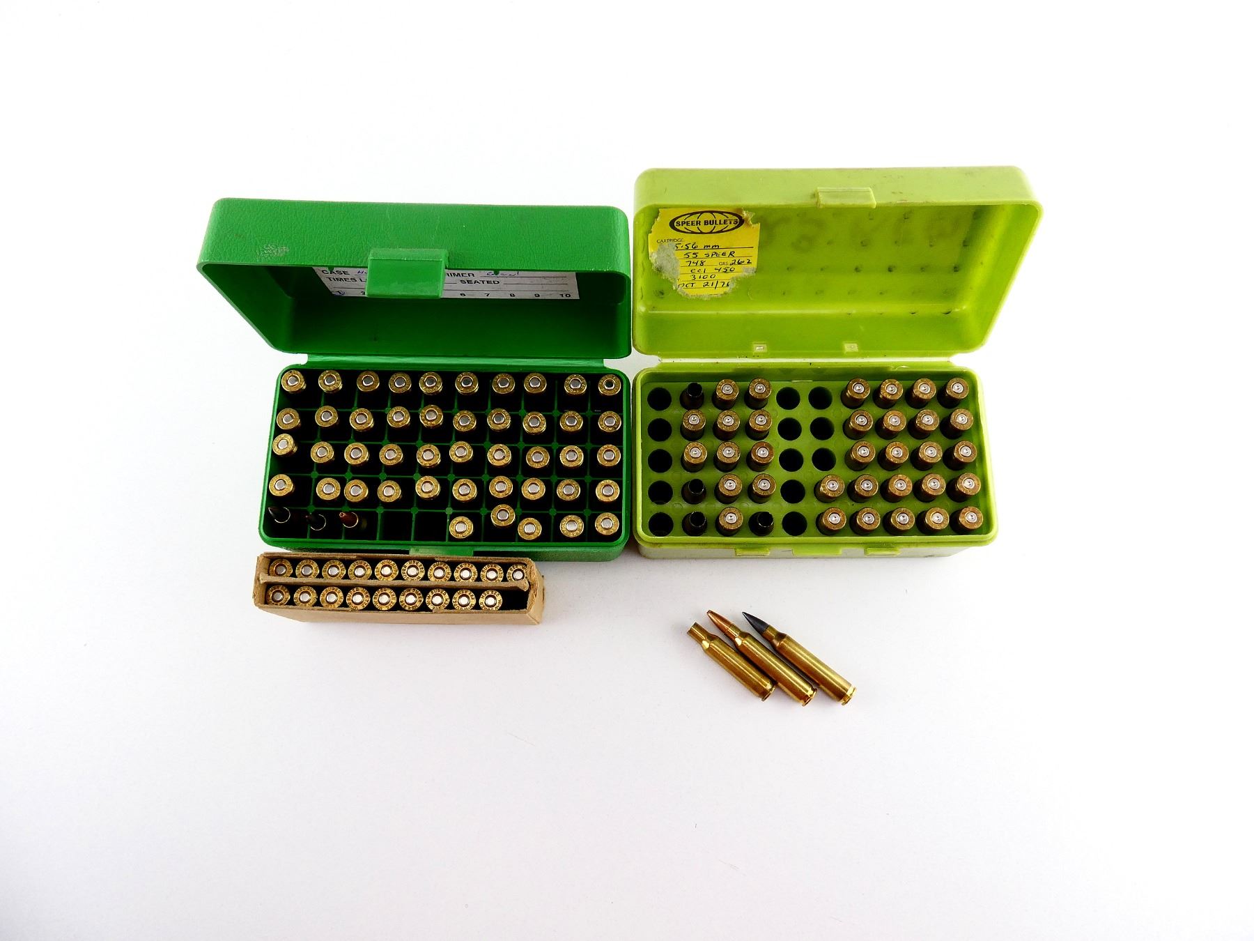 RELOADED ASSORTED .223 REM AMMO AND PRIMED / NON-PRIMED BRASS CASES / .222 REM PRIMED BRASS CASES LOT