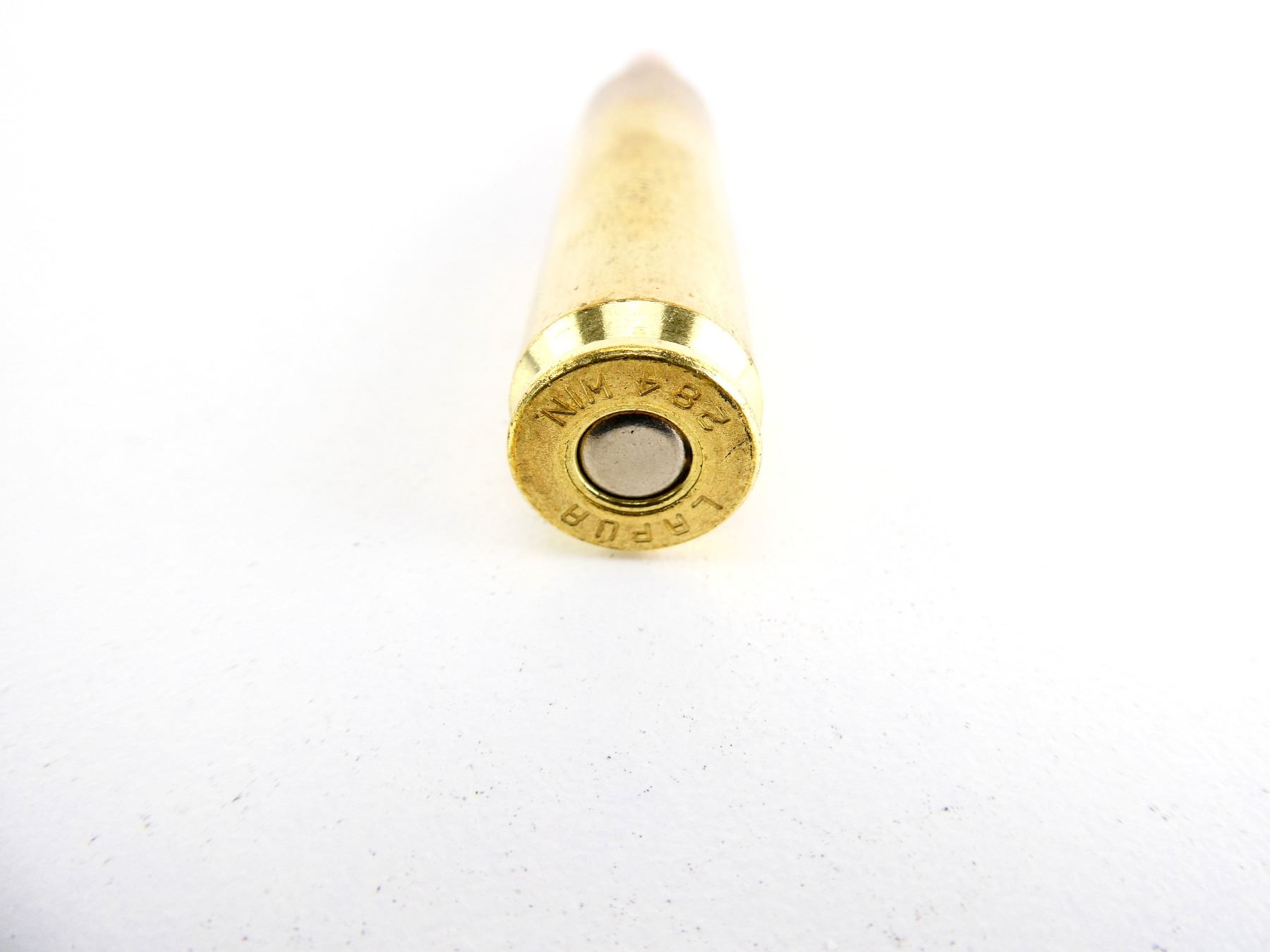 LOT INCLUDES; APPROX. (27) RNDS, MADE WITH LAPUA BRASS CASES, (2) NON-PRIMED BRASS CASES.