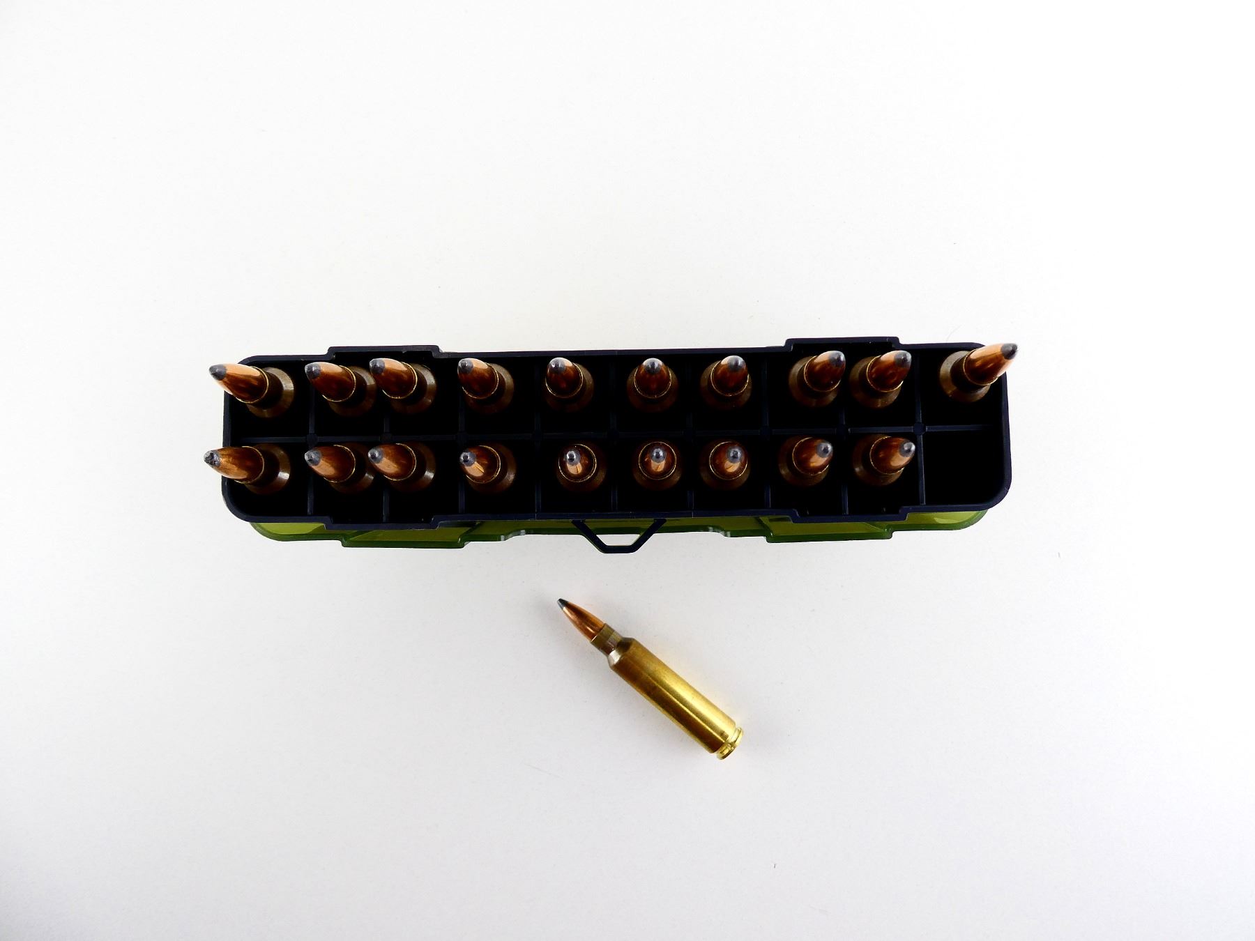 LOT INCLUDES; APPROX. (20) RNDS, MADE WITH LAPUA BRASS CASES, (1) PLANO PLASTIC RIFLE AMMO BOX.