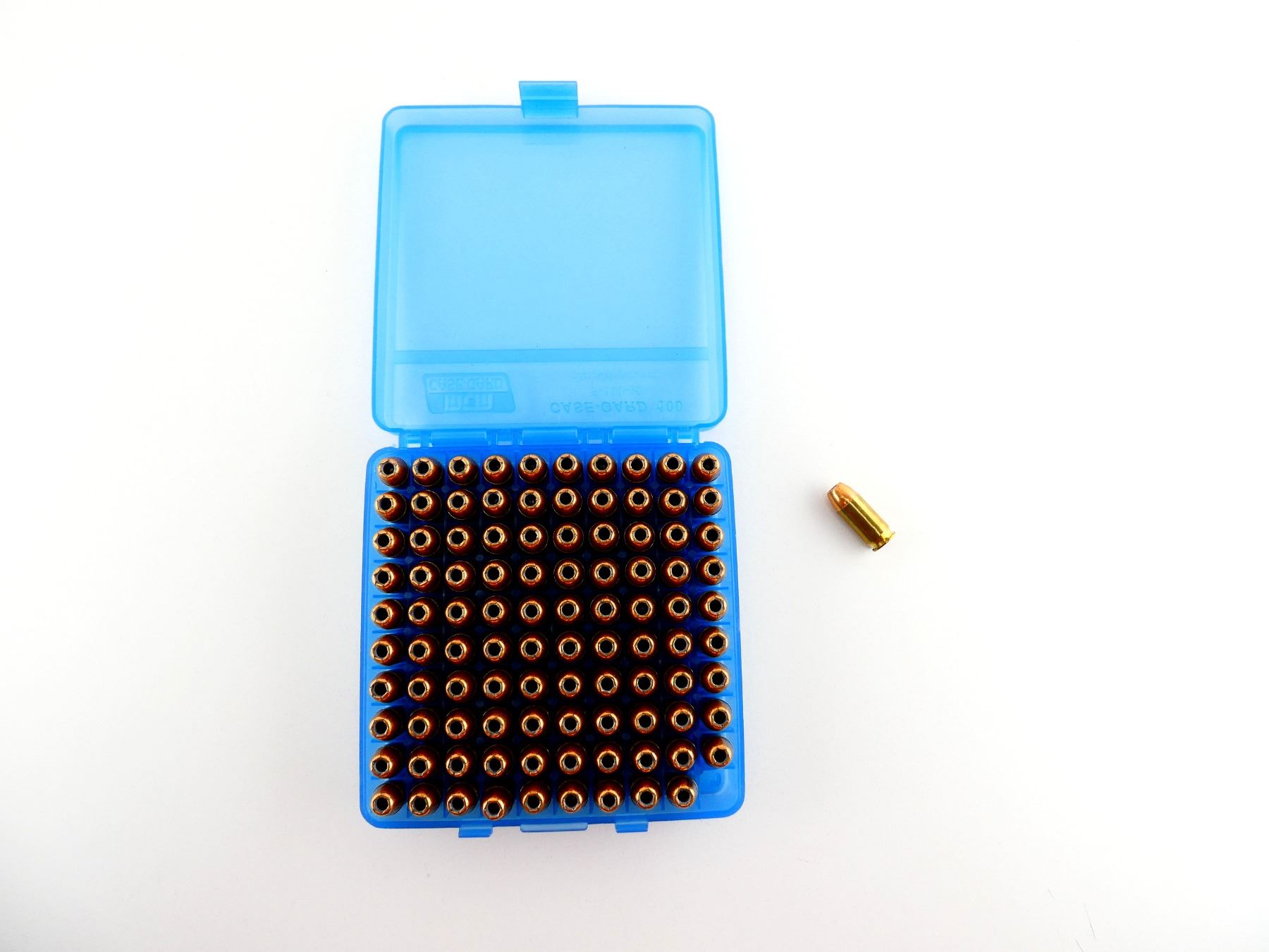 LOT INCLUDES; APPROX. (100) RNDS, (1) MTM CASE-GARD P-100-45 PLASTIC AMMO BOX.