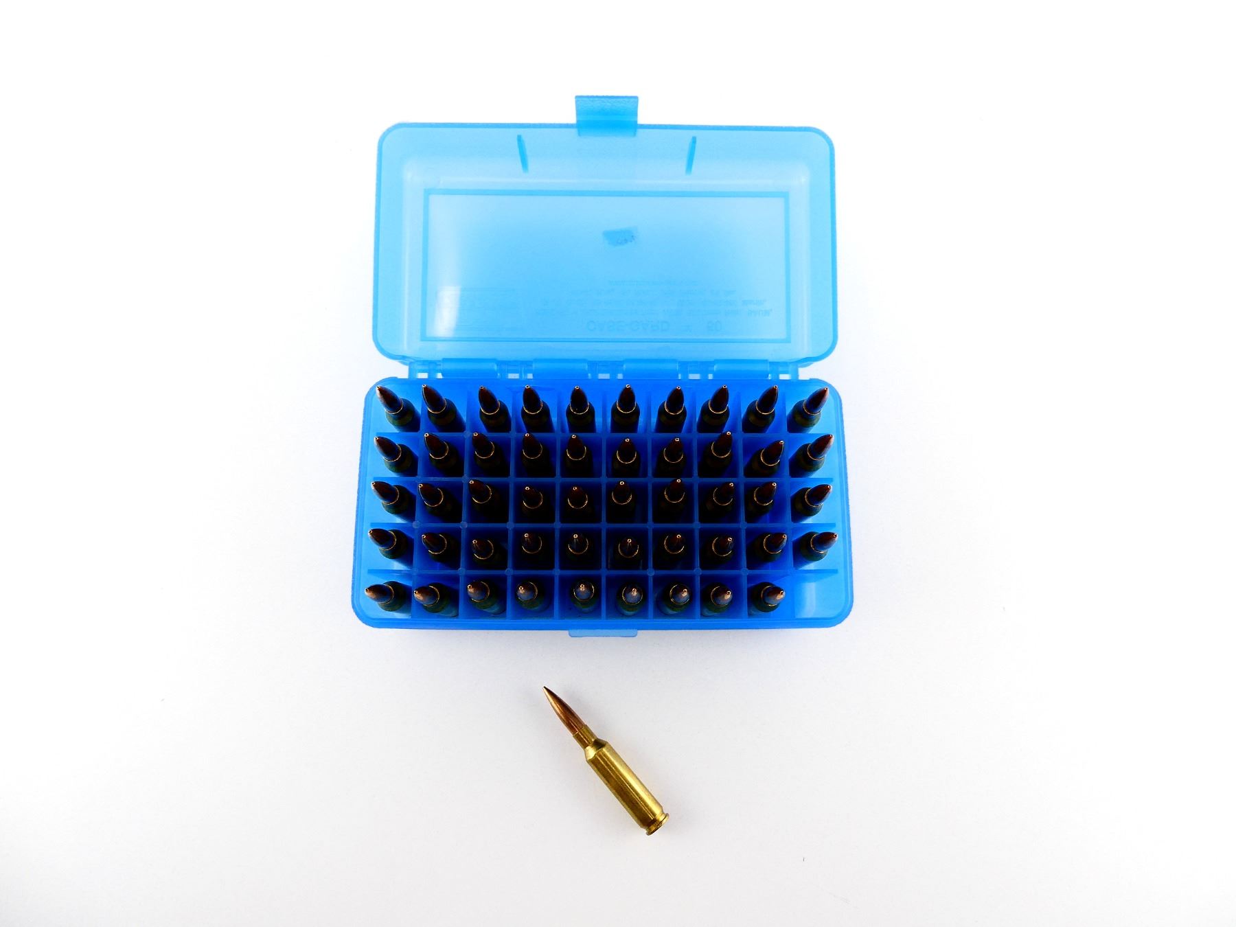LOT INCLUDES; APPROX. (50) RNDS, CONSIGNOR STATES; "142 GRNS HPBT", NOT CONFIRMED, (1) MTM CASE-GARD 50 PLASTIC AMMO BOX.
