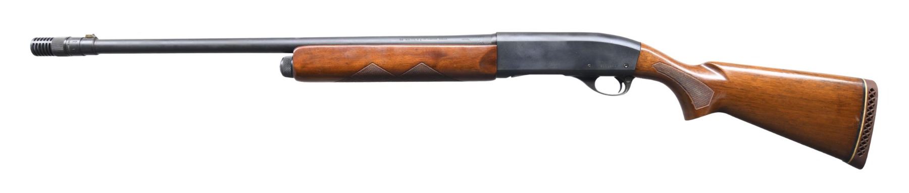 Cal. 12 ga. 2 3/4". S# 5100663. Bbl. 26" plain w/ aftermarket ventilated Cutts compensator. Walnut forearm & stock w/ impressed checkering. LOP: altered to 14 5/8" over an aftermarket White Line pad. CONDITION: 98% bead-blasted reblued finish. Original wood finish shows small marks & mildew spots. Good bore. PROVENANCE: from the renowned collection of quality sporting arms from Lewis Drake together with inventory of Lewis Drake Associates. (24-6583/DS). CURIO. $200-300.
