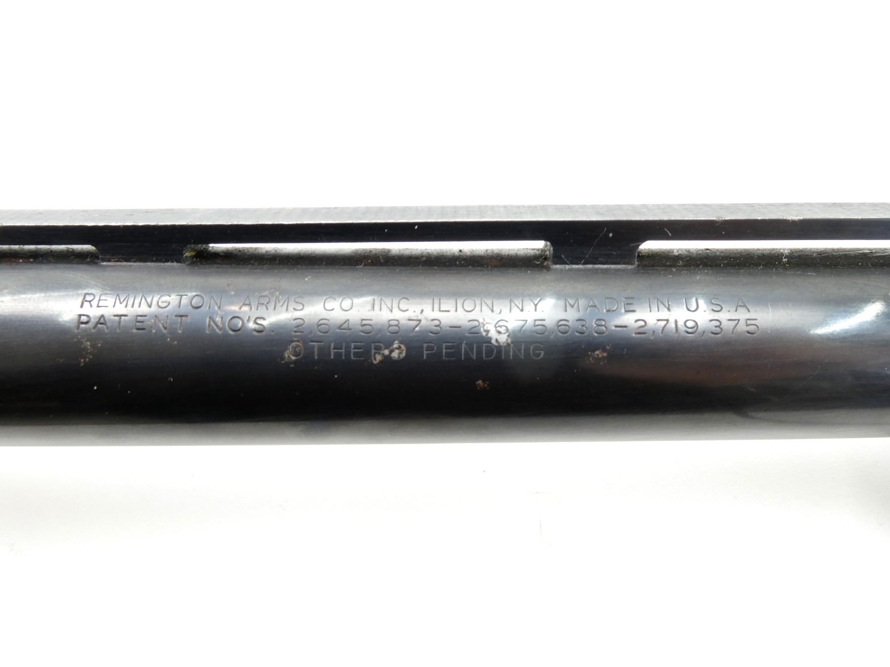 (1) 12 G. X 2 3/4" BARREL, BORE IS EXCELLENT, WITH FIXED FULL CHOKE, BLUED STEEL CONSTRUCTION, MARKED: "REMINGTON", "12 GAUGE 2 3/4", ETC., MISSING FRONT BEAD, WITH SILVER MID RIB BEAD, VENT RIB, OVERALL LENGTH APPROX. 33.5". MAY REQUIRE FITTING. SEE PHOTOS. PAL REQUIRED.