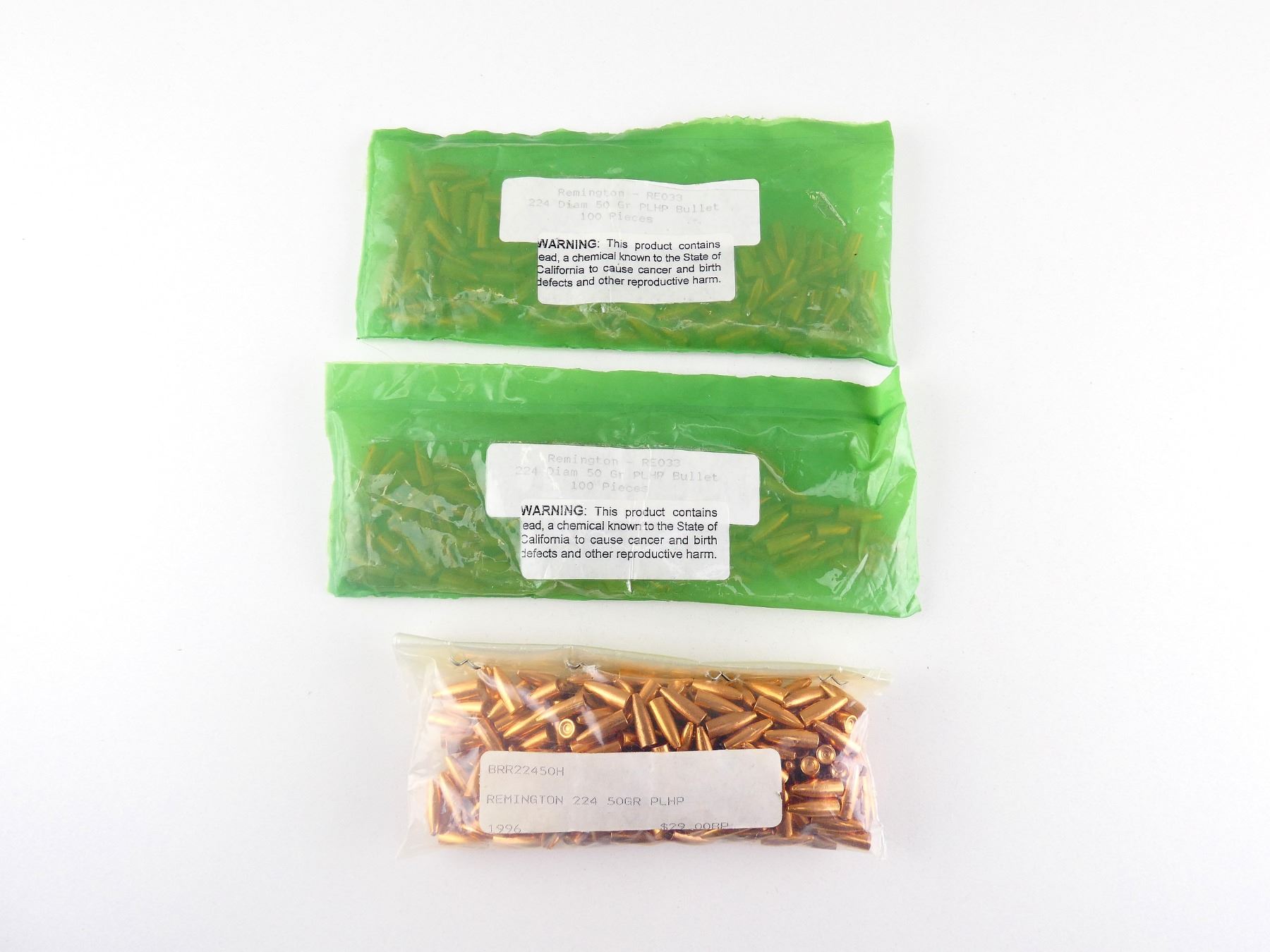 LOT INCLUDES; APPROX. (400) BULLETS, 50 GRNS (STATED ON BAGS NOT CONFIRMED), PLHP, UNOPENED.