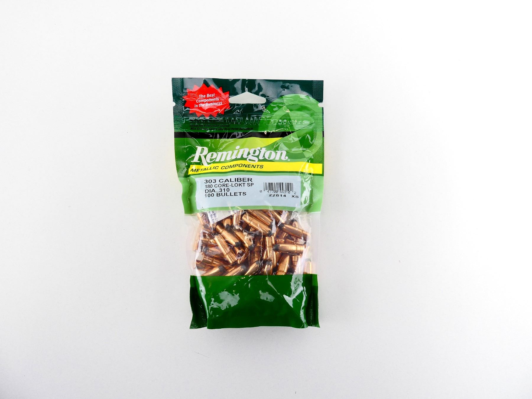 LOT INCLUDES; APPROX. (100) BULLETS, APPROX. DIA .310", 180 GRNS (STATED ON BAG NOT CONFIRMED) CORE-LOKT SP, UNOPENED..