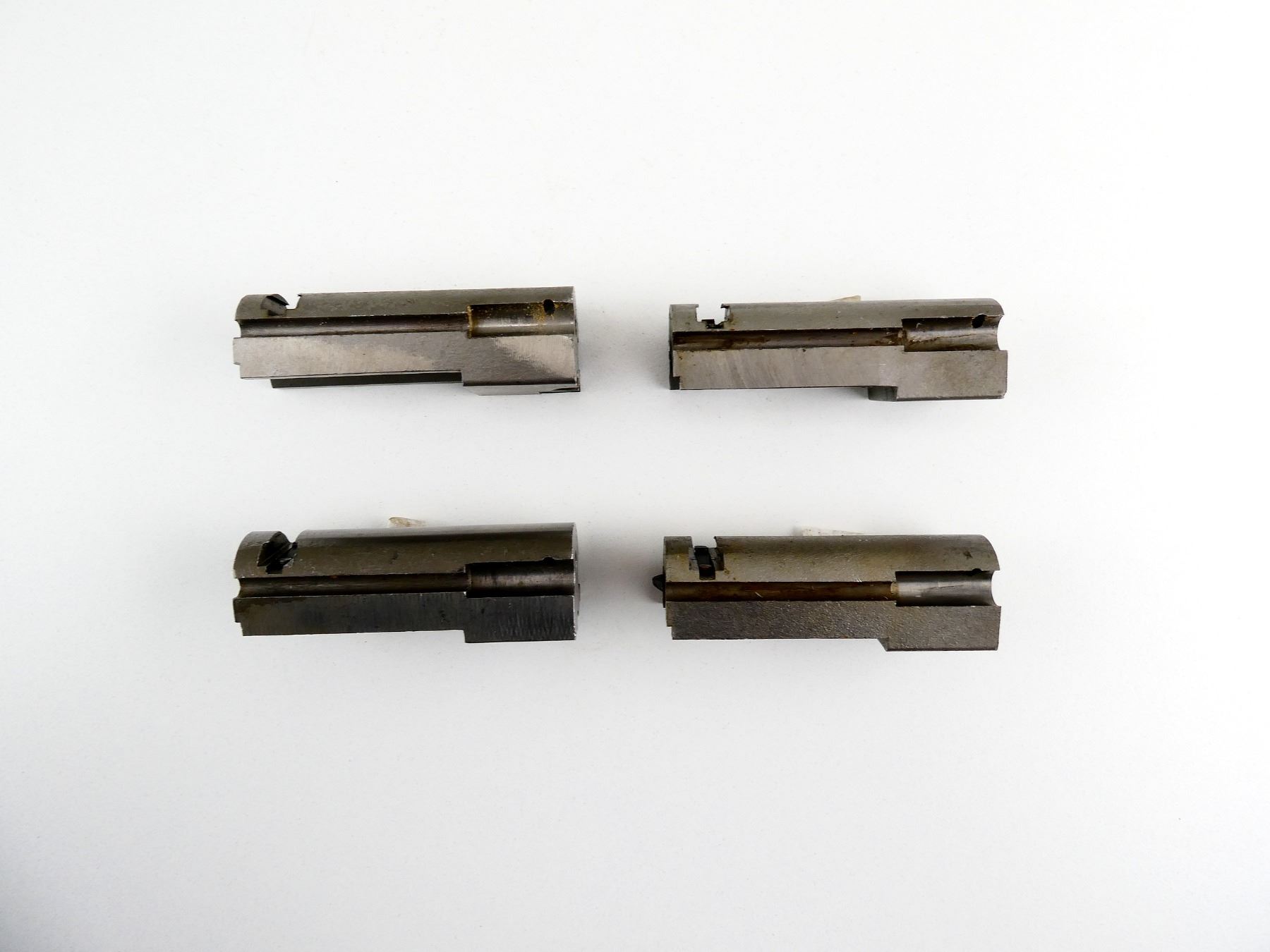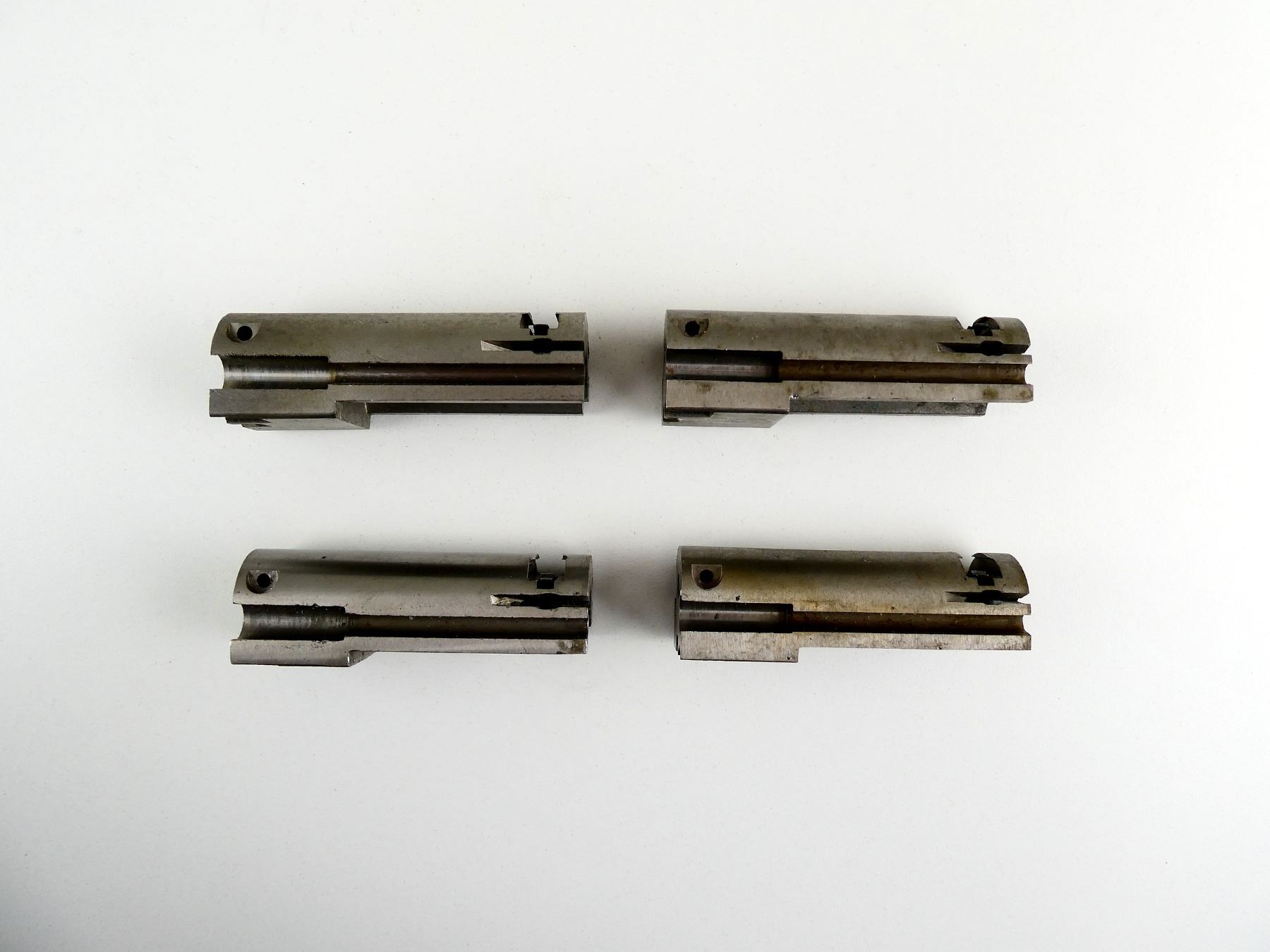 LOT INCLUDES; (4) BREECH BOLTS, STRIPPED, STEEL CONSTRUCTION, UNMARKED, FITS .17 HMR / .22 WMR RIFLES, OAL APPROX. 2.75". MAY REQUIRE FITTING. SEE PHOTOS.
