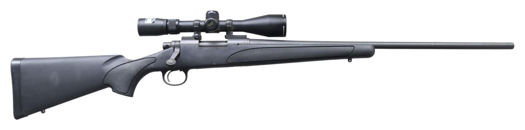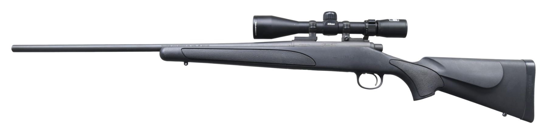 Cal. 308 Win. S# RR39910E. Bbl. 24". Rifle is sighted with a Nikon Buckmasters II 3-9x40 scope. Scope has duplex crosshair BDC reticle & very good optics. matte gray finish. Black synthetic stock with right handed cheekpiece, bottom mounted sling studs & factory recoil pad. LOP: 13". CONDITION: stock shows scattered handling marks. Metal retains 97-98% matte finish with a couple spots of light oxidation & some handling marks. Action functions properly when hand cycled. Near excellent bore. (25-2490/MJC). MODERN. $400-600.