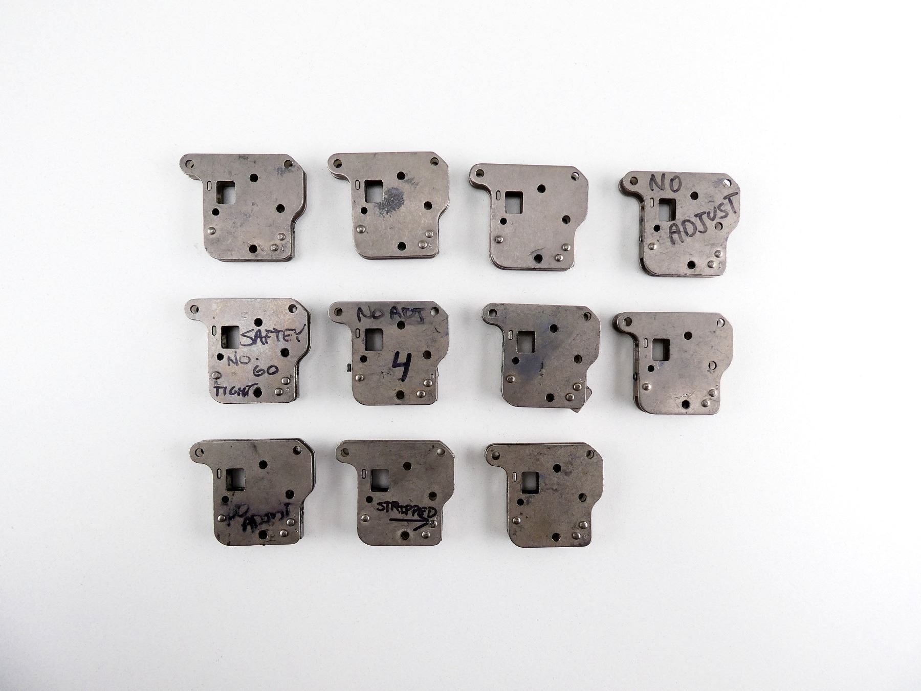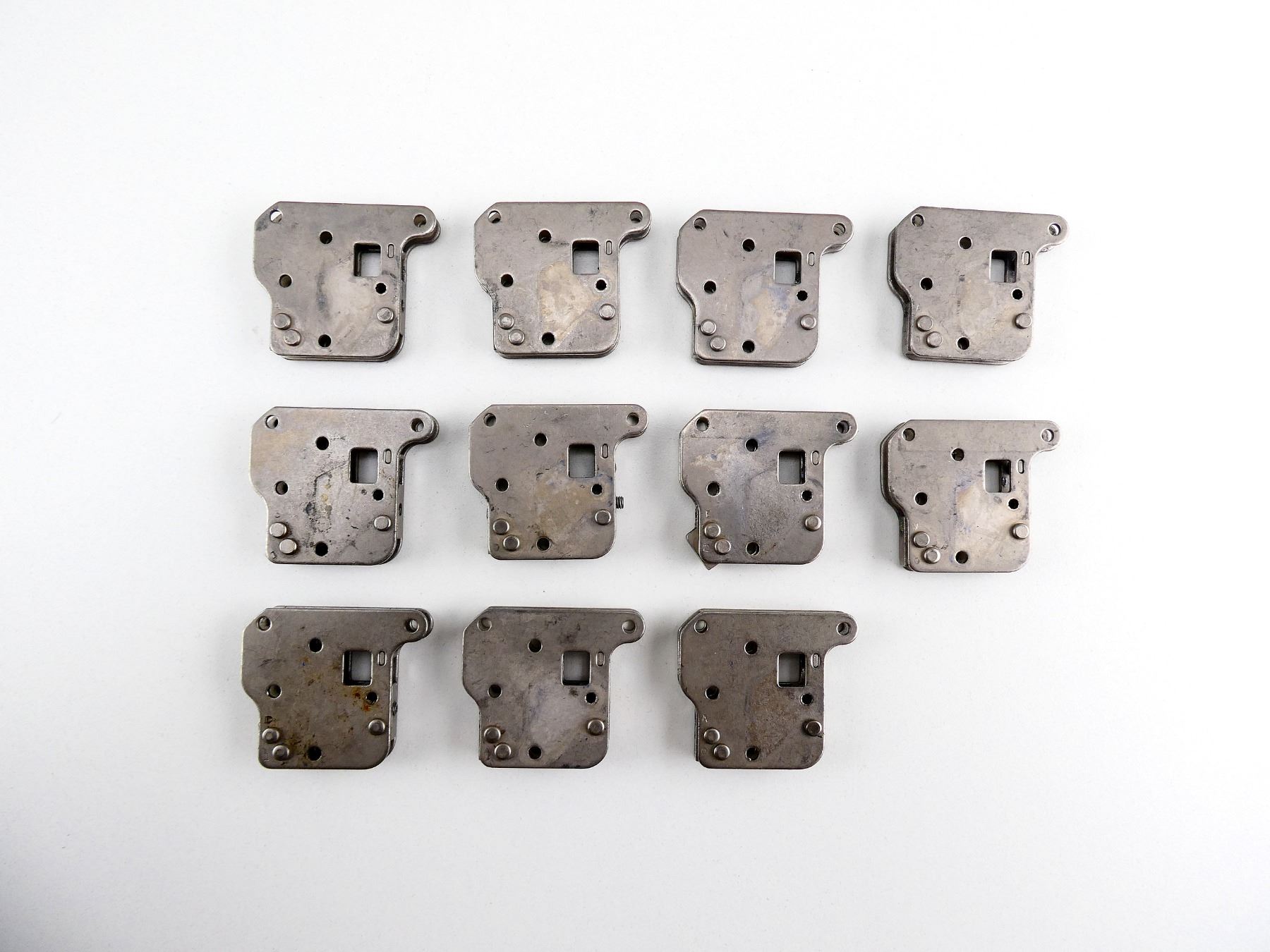 LOT INCLUDES; (10) TRIGGER MECH. HOUSINGS, STAINLESS, MAY CONTAIN A FEW PARTS. MAY REQUIRE FITTING. SEE PHOTOS.