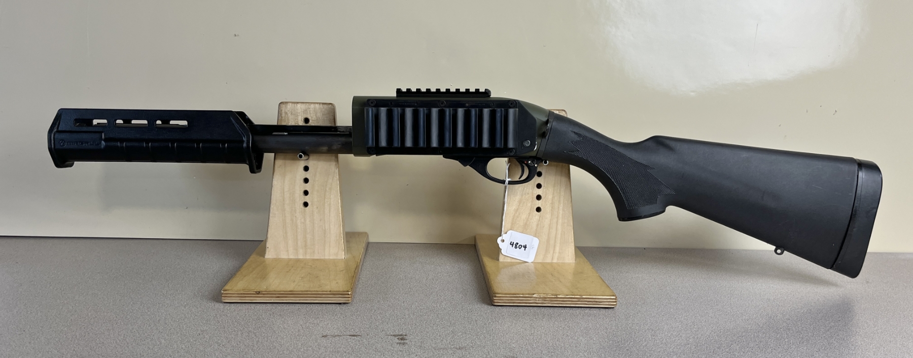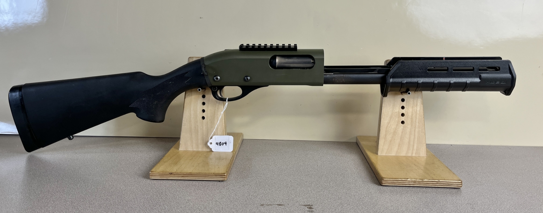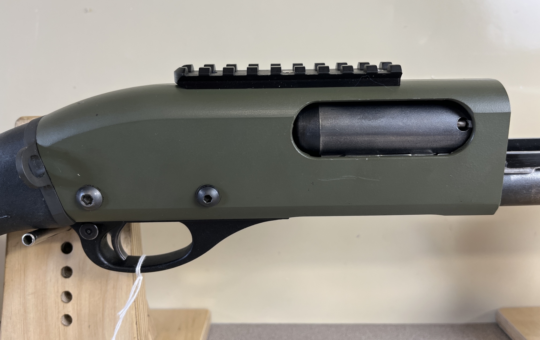 CONDITION: G OVERALL. NOTE: RECEIVER PAINTED GREEN. SPECS: NO BBL. EXTRAS: 6 ROUND SIDE SADDLE, SINGLE POINT SLING MOUNT, MAGPUL FOREND, PICATINNY RAIL. S/N: C878271M