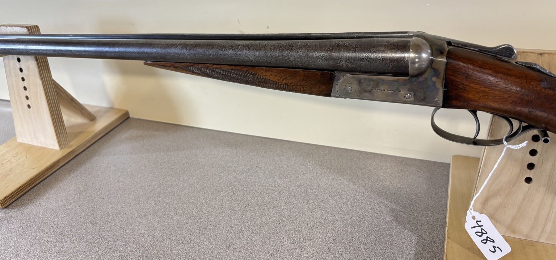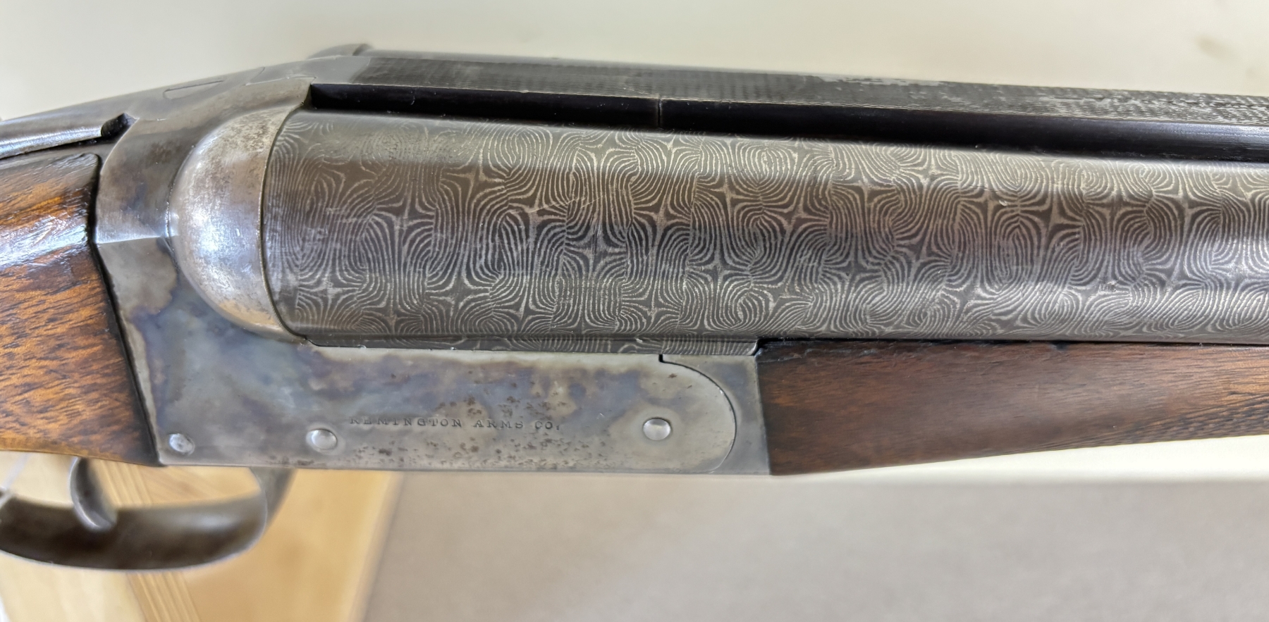 CONDITION: G OVERALL VG/SHINY BORES. NOTE: REPAIRED CHIP AT BUTT. SPECS: 30IN DAMASCUS BBLS, CHOKED FIXED IM. EXTRAS: RECOIL PAD. S/N: 351370