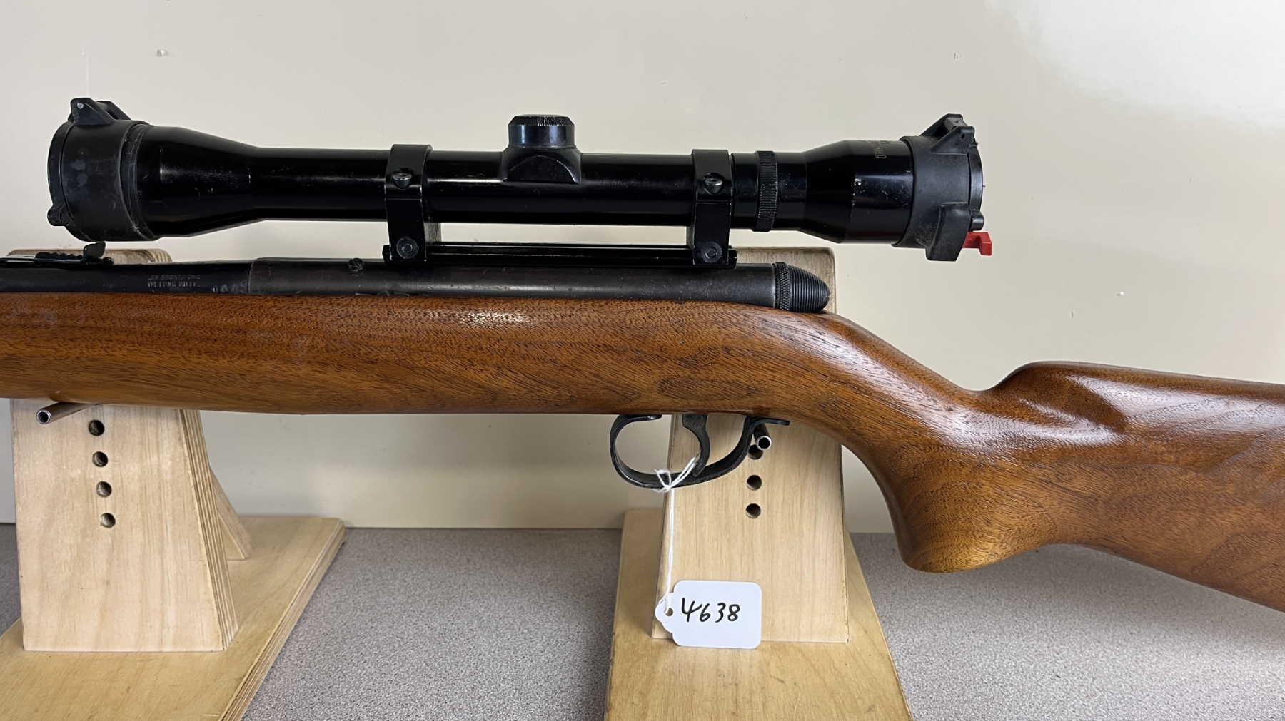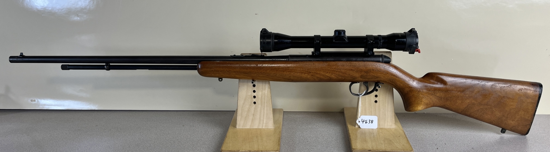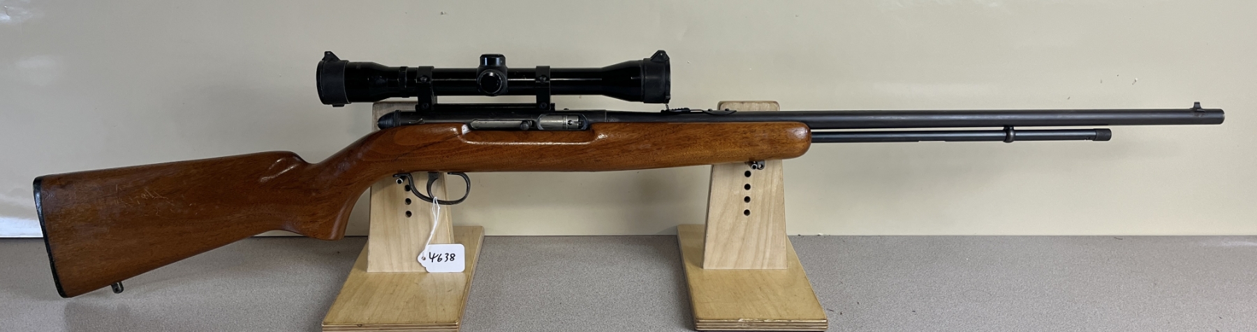CONDITION: G OVERALL INCL BORE. SPECS: 24IN BBL WITH IRON SIGHTS. EXTRAS: GLOBE FIREARMS 4X32 SCOPE CLEAR WITH CROSSHAIRS. S/N: 7702