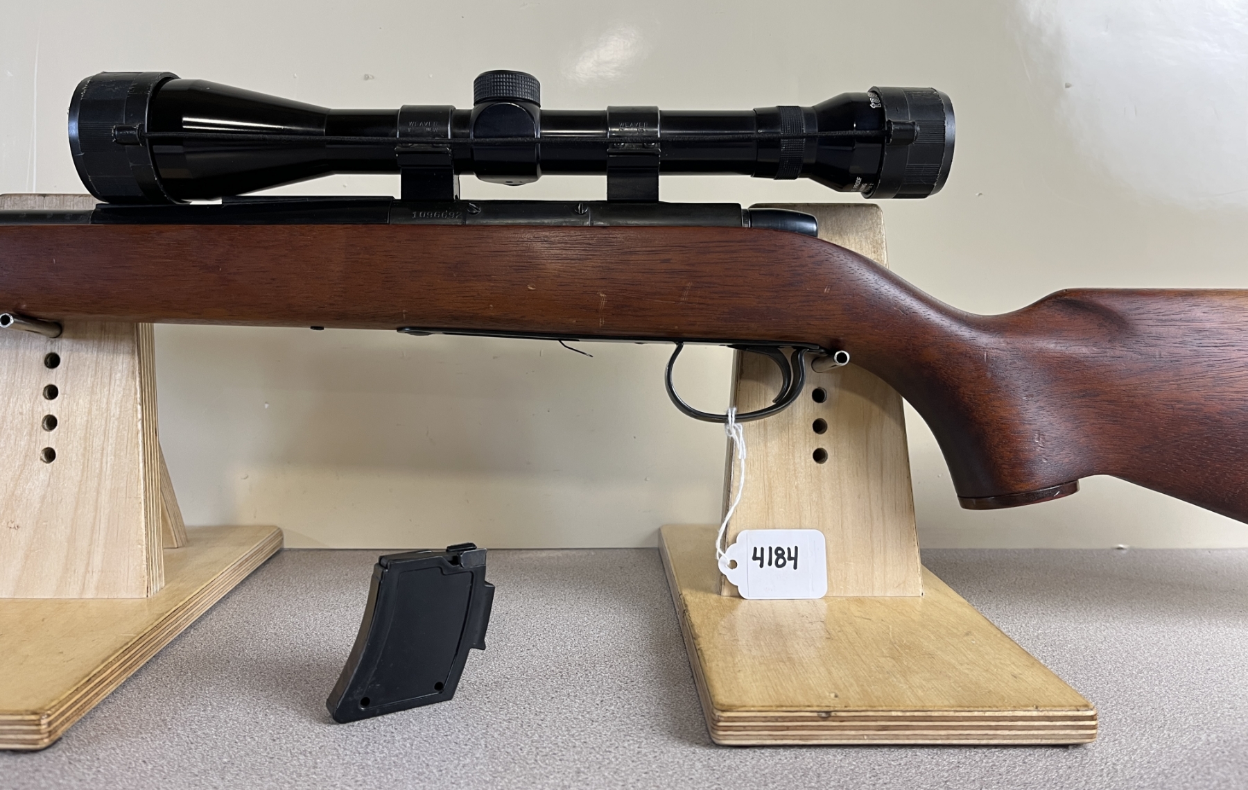 CONDITION: G OVERALL INCL BORE. MISSING REAR SIGHT. SPECS: 24IN BBL. INCL 1X MAGAZINE. EXTRAS: TASCO 4X40 SCOPE, CLEAR WITH POST RETICLE. S/N: 1096692